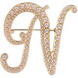Gold-Tone A-Z Letter Brooch Pin for Women Imitation Pearl Initial Brooches Fashion 26 Alphabets Pins Custom Jewelry Gifts