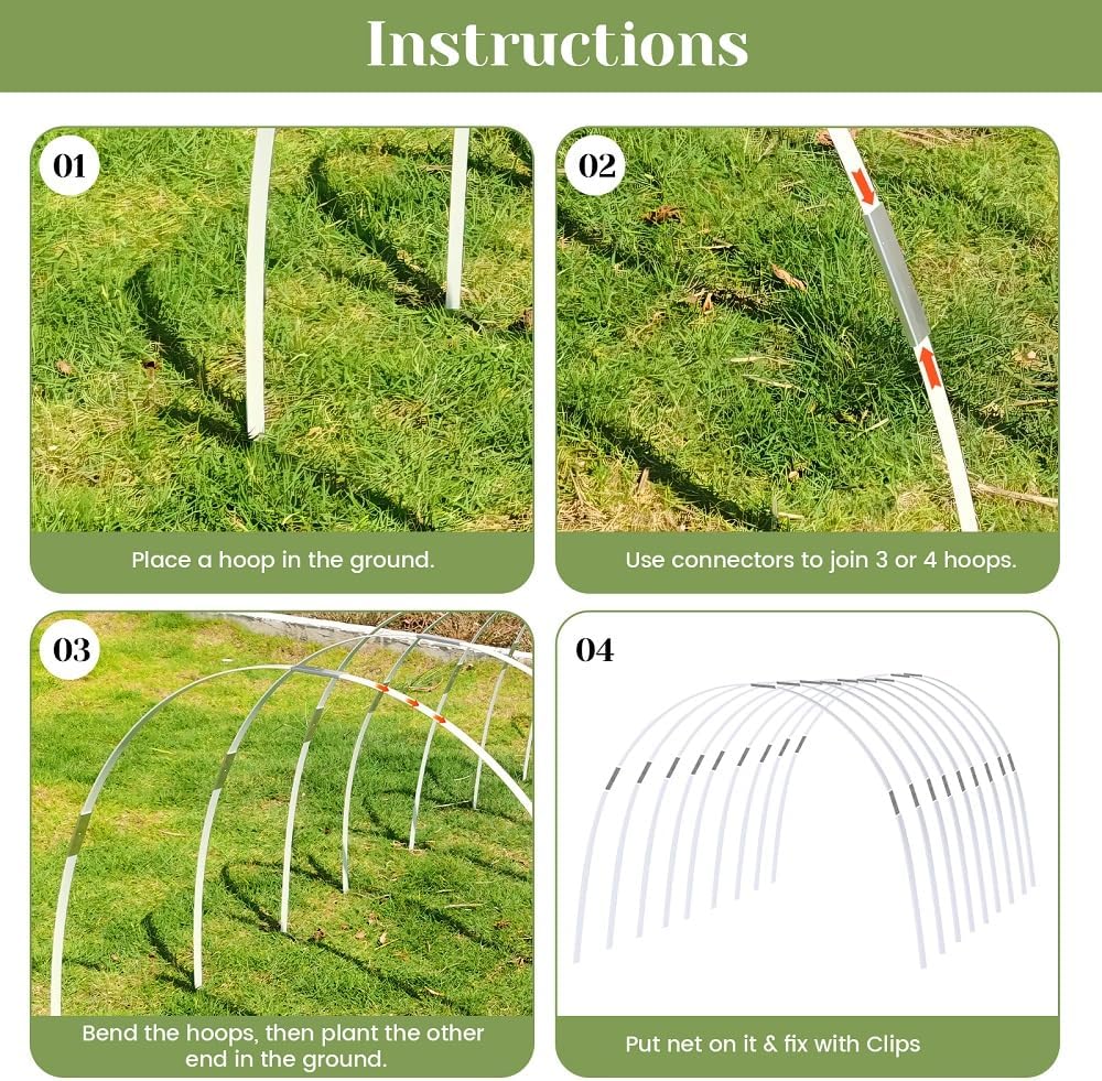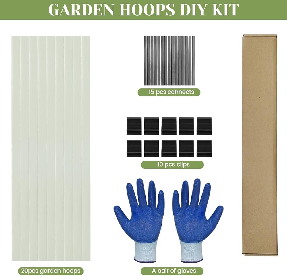 مجموعة DIY - تأتي مع 120 قطعة من إطار الأطواق، و17 بوصة في الطول، و90 قطعة من الموصلات، وزوج واحد من قفازات الحديقة، و50 قطعة من المشابك، وأطواق الحديقة الخاصة بنا مناسبة لسرير مرتفع في الحديقة الصغيرة بعرض 1-3.5 قدم، لذلك نقترح ما لا يزيد عن 4 شرائط في إطار قوس واحد.