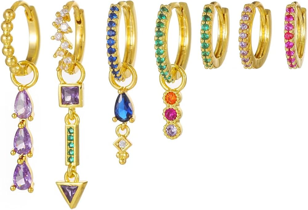 المواد: : مجموعة الأقراط الذهبية هذه مصنوعة من النحاس الفاخر المطلي بالذهب عيار 14 قيراط لضمان الاستخدام طويل الأمد. أقراط لا تسبب الحساسية للأذنين الحساسة، مزيج من تصميمات الأقراط الذهبية الحلقية المصنوعة من الزركونيا المكعبة بدرجة AAAAA.