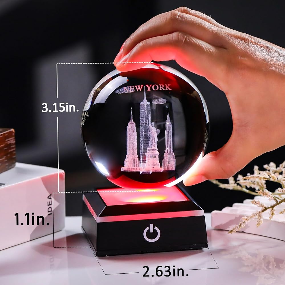 Equipped with a special LED lighting base with 6 Light Modes, the light color can be adjusted automatically, making the crystal colorful; the touch switch on the base is easy to use, you can use connect the power via a USB cable.