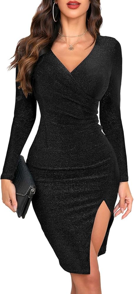• فستان بأكمام طويلة، فستان برقبة عميقة على شكل حرف V، فستان مكشكش أمامي، فستان بفتحة جانبية، فستان ضيق، فستان ملفوف صناعي، فستان ضيق مناسب. هذا الفستان اللامع رائع للعديد من المناسبات، مثل حفلات الكوكتيل، وضيوف الزفاف، والسهرات، وحفلات العودة إلى الوطن، والخروج، والعشاء، ونوادي المواعدة، والسهرات، وأعياد الميلاد، والعزوبية، والأداء، والولائم، والاحتفال، والذكرى السنوية، والتخرج