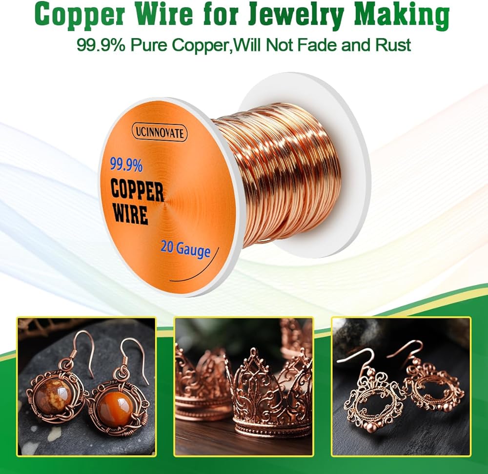 سلك نحاسي لصنع المجوهرات - حرفة نحاسية نقية بثقة: سلك النحاس النقي بنسبة 99.9% هو الخيار الأمثل لجميع احتياجاتك الحرفية. استخدمه لإنشاء قطع مجوهرات مذهلة، باستخدام هذا السلك المتوافق على نطاق واسع، يمكنك بسهولة دمج العديد من الخرز والحلي ومكونات المجوهرات الأخرى في تصميماتك. دع إبداعك يرتفع مع خيارات لا حصر لها!
