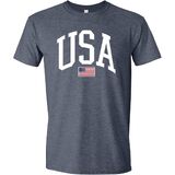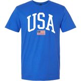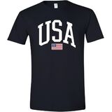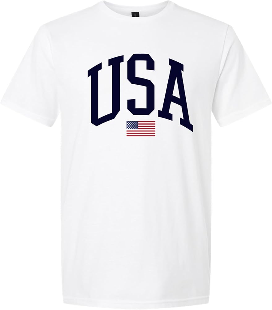 تصميم كلاسيكي أمريكي - أظهر روحك الوطنية مع هذه المطبوعة الجريئة "USA" التي تتميز بالعلم الأمريكي. تي شيرت مثالي للاحتفال بالعطلات الوطنية أو الملابس الكاجوال أو الفخر اليومي.