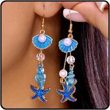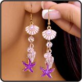 أقراط صدفة البحر: تجمع بين السحر الساحلي والأناقة الخالدة، تتميز هذه الأقراط المتدلية على شكل صدفة البحر بتصميم مذهل يجسد جوهر البحر. تقترن زخارف نجم البحر والصدفة مع اللؤلؤ اللامع، مما يخلق مزيجًا متناغمًا من الجمال الطبيعي والرقي في أسلوبك.
