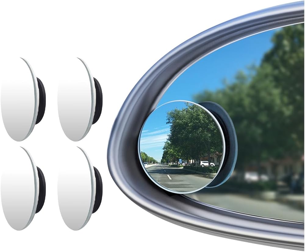 مرآة سيارة دائرية للبقع العمياء، مرآة محدبة بزاوية واسعة من الزجاج عالي الدقة 2 بوصة مع عصا قابلة للتعديل، مرايا رؤية خلفية بدون إطار 360 درجة للسيارة وسيارات الدفع الرباعي والشاحنة (4 قطع)