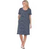 br>Feel the comfort of your favorite t-shirt in a chic dress br> Relaxed fit for all-day ease br> Classic crewneck design br> Flattering A-line silhouette enhances your shape br> Convenient side pockets for your essentials br> Perfect 42" length for versatile styling br> Soft and durable cotton/poly knit fabric br> Machine washable for easy care br> Imported