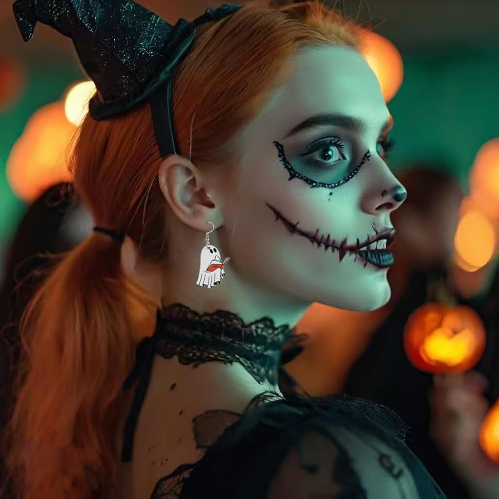 زي الهالوين الذي لا يُنسى - هذه الأقراط الساحرة المتدلية على شكل شبح مخيف مخيف على شكل قمر للسيدات هي الإكسسوار المثالي لرفع مظهر الهالوين الخاص بك بلمسة من الرعب المرح.