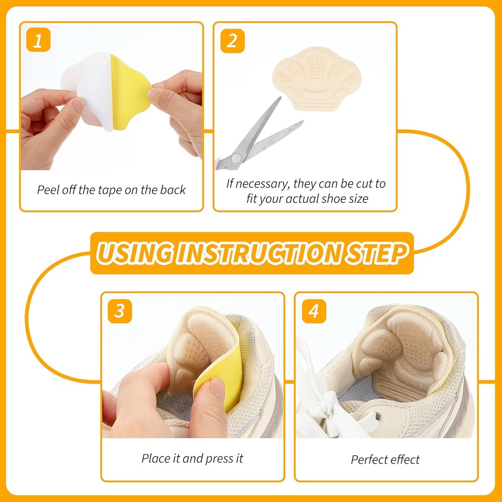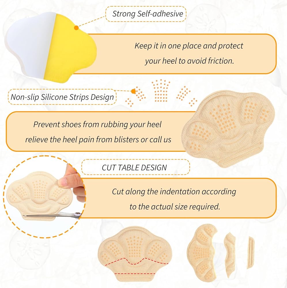 • Worry-Free Purchase: Includes 4 pairs of high-quality heel pads for high heels and other shoe types. Our heel cushion pads and high heel inserts for women come with a satisfaction guarantee. Perfect inserts for shoes that are too big and heel protecto for all-day comfort.