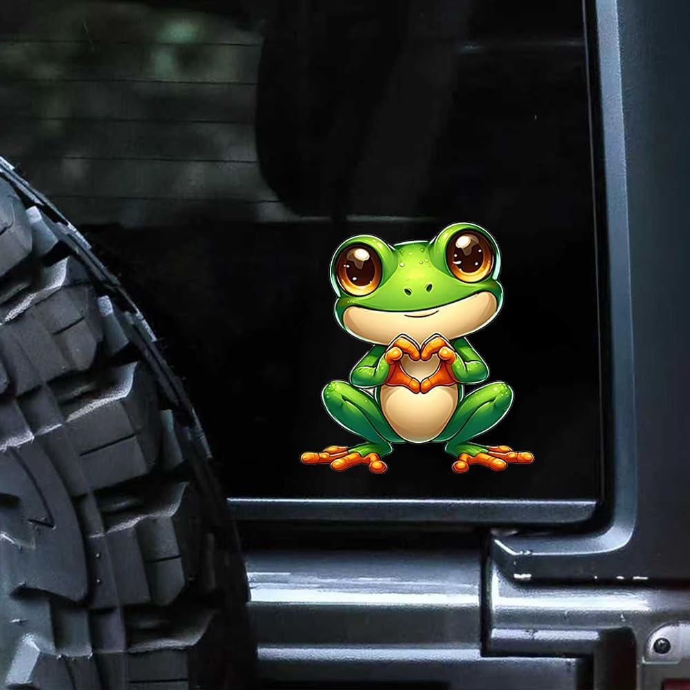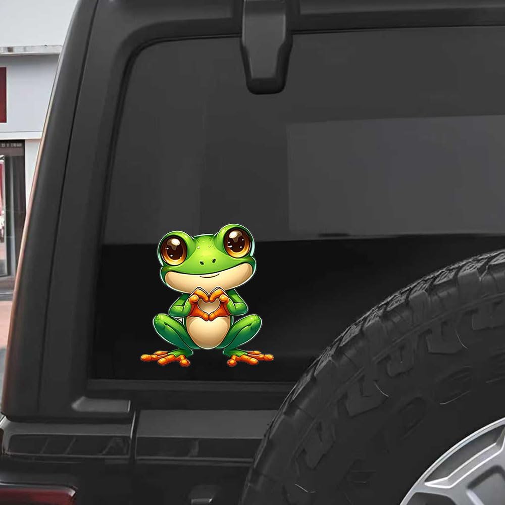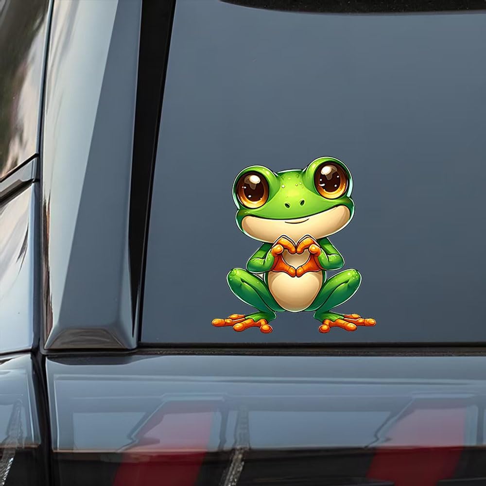 DESIGN FEATURES: Adorable frog character making heart gesture, perfect for adding a cute and playful touch to your vehicle or belongings