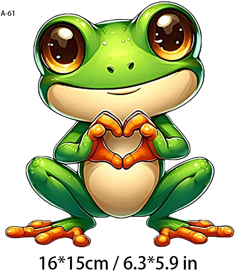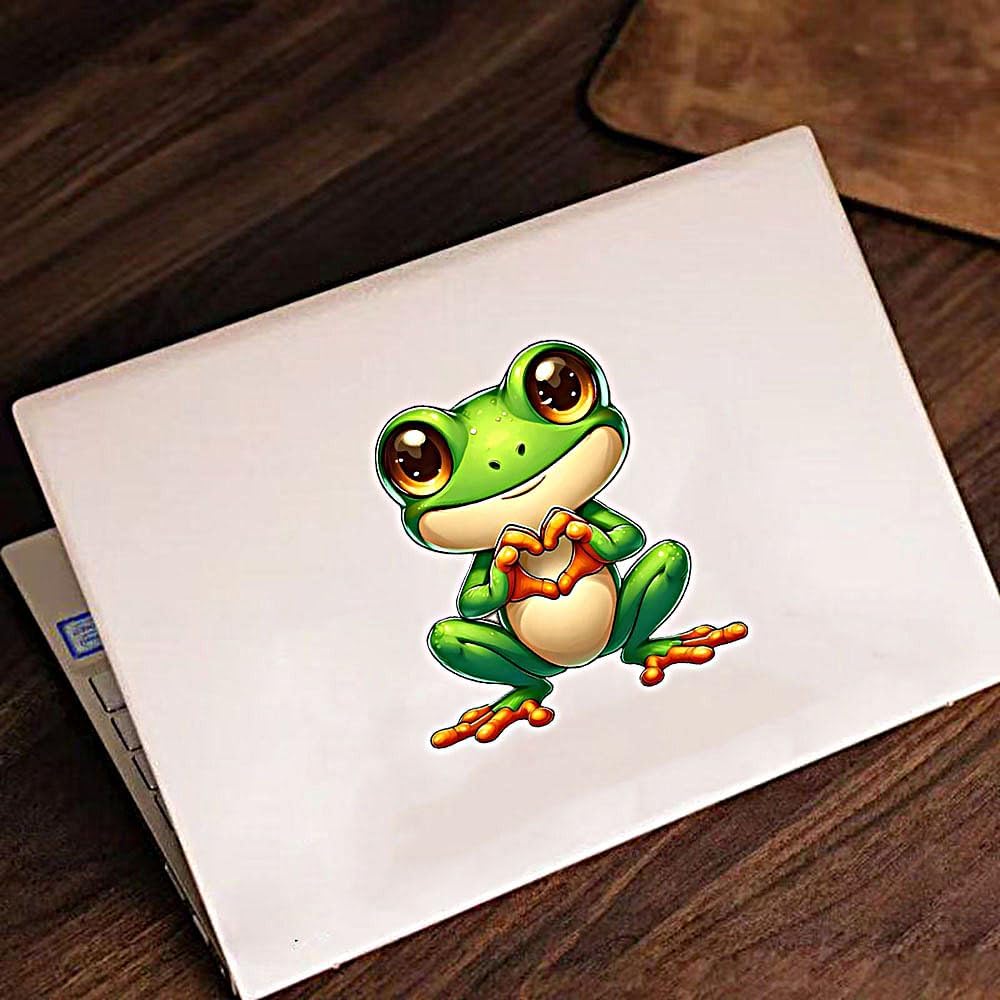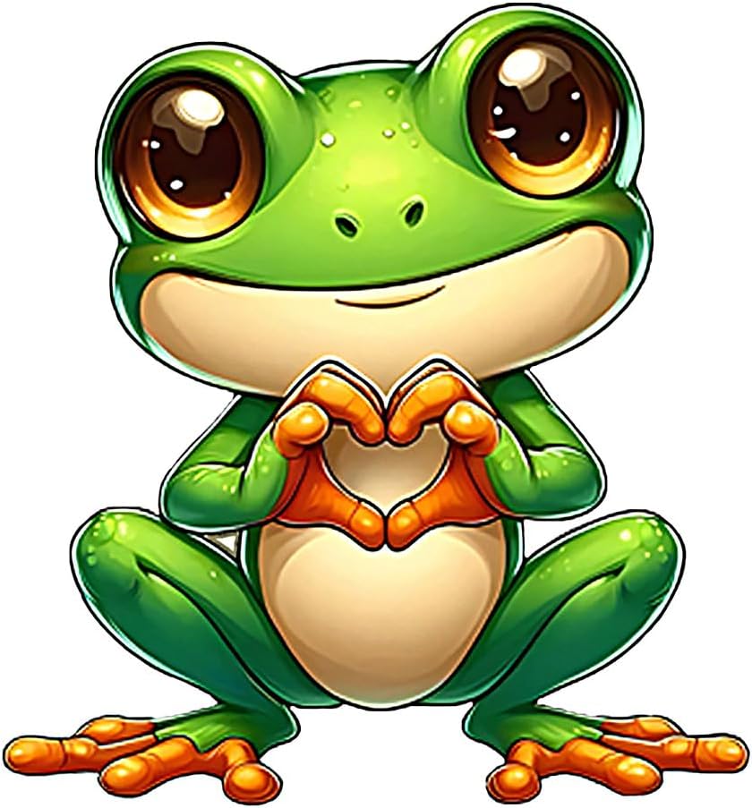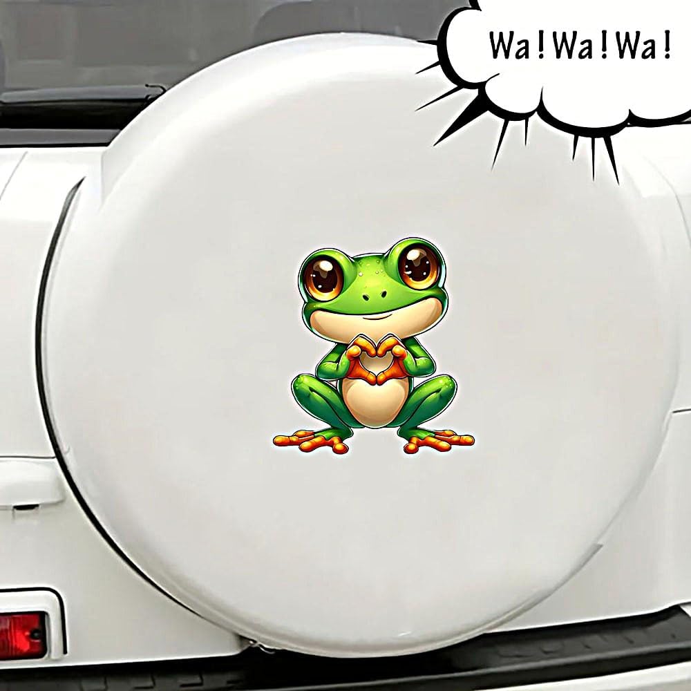 DESIGN FEATURES: Adorable frog character making heart gesture, perfect for adding a cute and playful touch to your vehicle or belongings