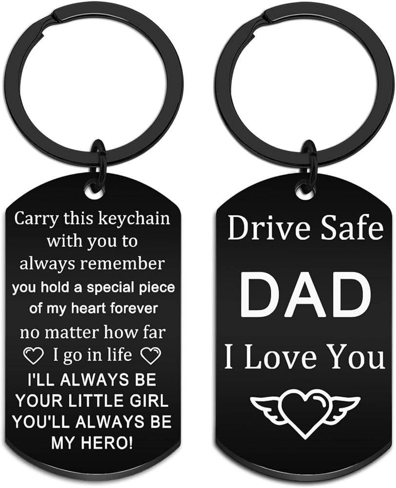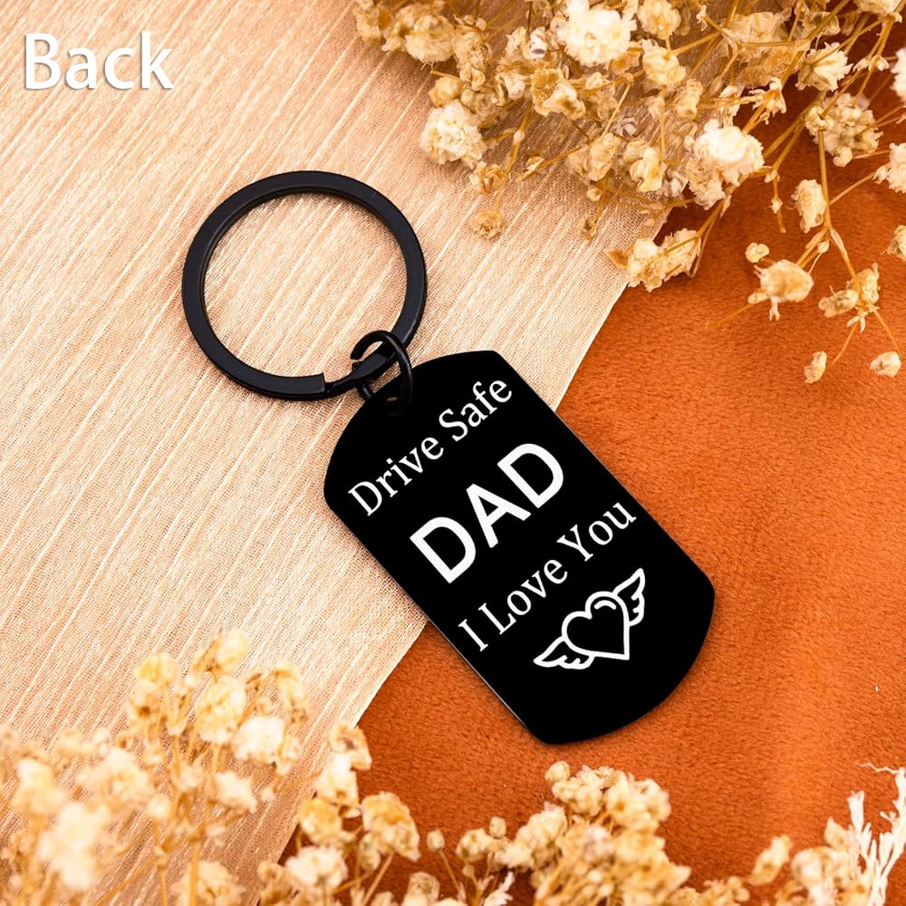 • Drive Safe Keychain for Him:The body of this father's day gifts is black with white text “drive safe dad” engraved on it, and the overall color is black, which is understated and elegant as a boy's keychain.The presents for dad is able to be used as a keychain and a car key charm. Very versatile.