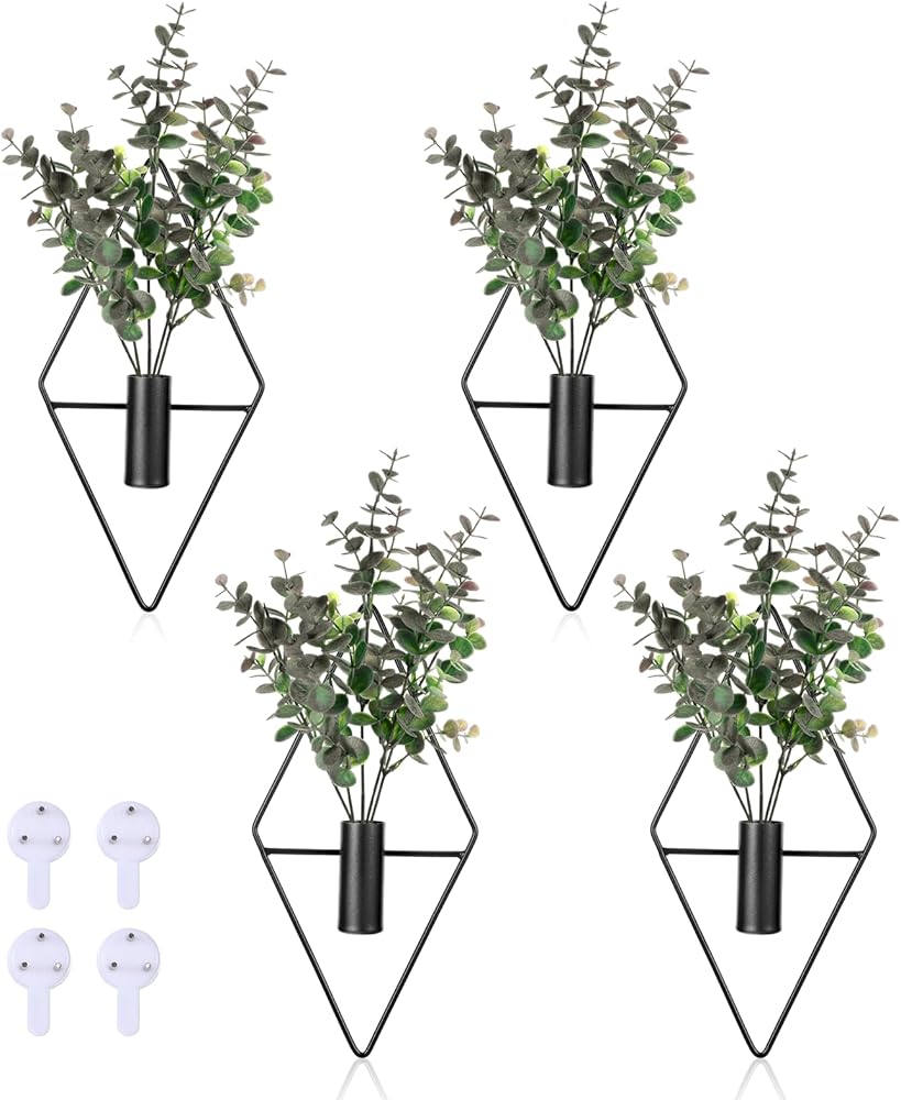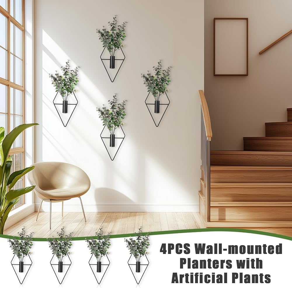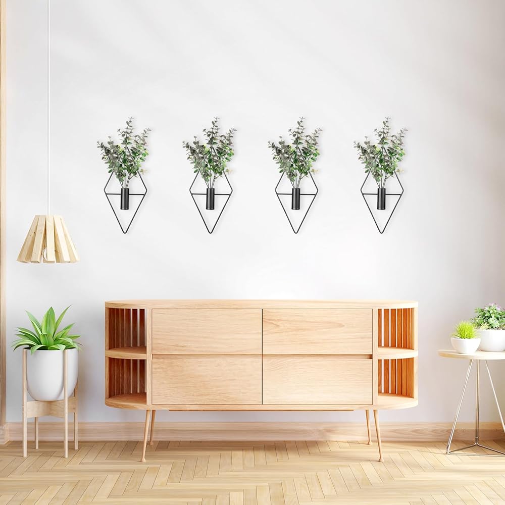 Transform your living space with this set of black geometric wall hanging decor featuring faux eucalyptus leaves. The modern diamond-shaped frames add elegance, while the realistic greenery brings warmth and natural beauty to your home. These lightweight, easy-to-install pieces elevate your décor instantly without the need for watering or upkeep.