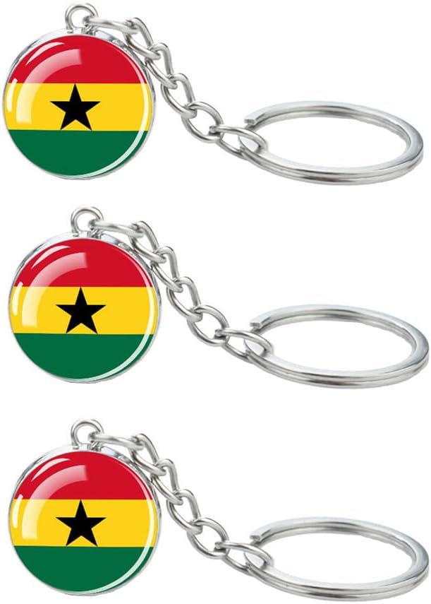 3 قطع سلسلة مفاتيح علم غانا، سلسلة مفاتيح رائعة لمفاتيح السيارة، حلقات مفاتيح وسلاسل مفاتيح من الفولاذ المقاوم للصدأ، تستخدم لتزيين المنزل، وديكورات تعليق المجوهرات.