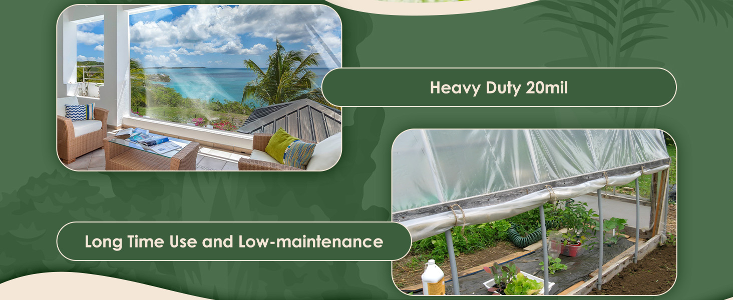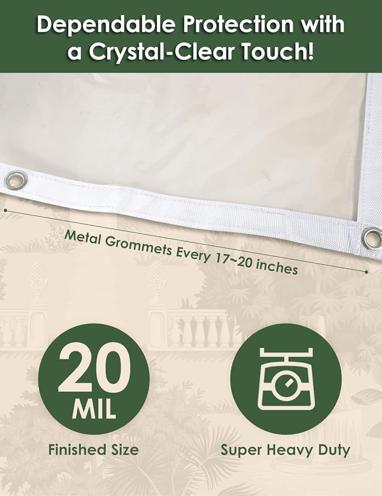 🔎 عرض سلس يصل إلى 98.4 بوصة - انظر بوضوح من خلال موادنا الشفافة للحصول على رؤية خارجية مثالية! يوفر قماش القنب الشفاف المصنوع من مادة PVC وضوحًا استثنائيًا، مما يسمح لك بالاستمتاع بجمال البيئة المحيطة بك مع البقاء محميًا. لا حاجة للخياطة للأحجام التي يقل عرضها عن 98.4 بوصة (2.5 متر). استمتع بمنظر واضح تمامًا دون عائق بفضل مادة PVC المطورة.