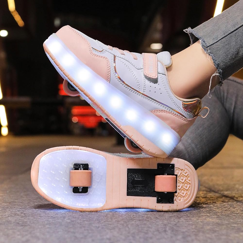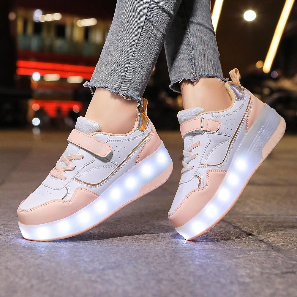 الوظائف: الأحذية الدوارة هي أحذية متعددة الوظائف. يمكنك التبديل بسهولة بين أحذية التزلج الدوارة والأحذية الرياضية العادية والأحذية الرياضية الكاجوال عن طريق إظهار العجلات أو إخفائها بزر على كعب الحذاء.