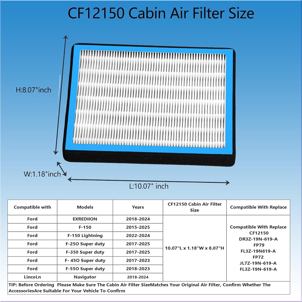 【Reference Number】:Compatible With Replace CF12150, DR3Z-19N-619-A, FP79, FL3Z-19N619-A ,FP72,JL7Z-19N-619-A, FL3Z-19N-619-A .Tip: Please carefully check the brand/model/year before placing it when purchasing