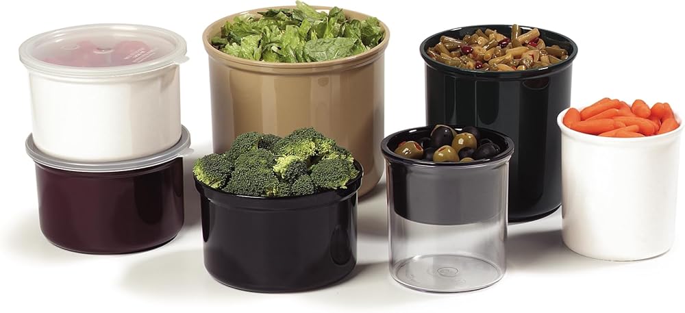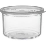 Carlisle Classic™ Crock w/ Lid, Clear, 1.5 QtThis 1.5 Qt clear Classic™ crock provides a thick walled heavyweight design for extra durability and the high gloss finish is scuff resistant. In addition, the SAN construction is chemical resistant to food acids and dressings.Temperature Range: 0° F to 180° F Capacity: 1.5 Qt Made in USA & NSF Approved Material: SAN Lid Material: Polypropylene Color: Clear Height: 4-1/16" Lip Diameter: 6-9/16" Under Lip Diameter: 6-1/8 231205