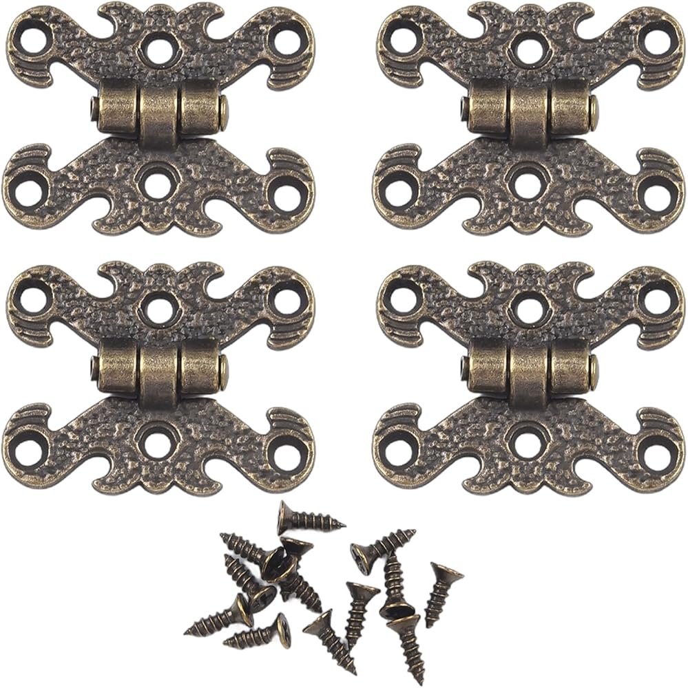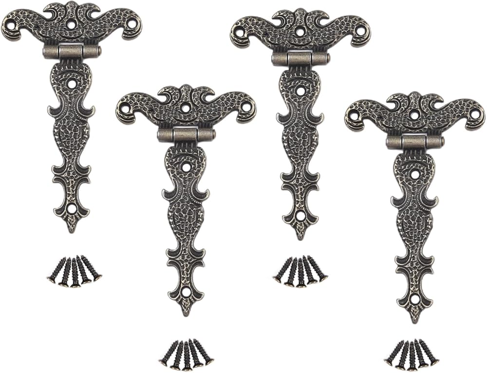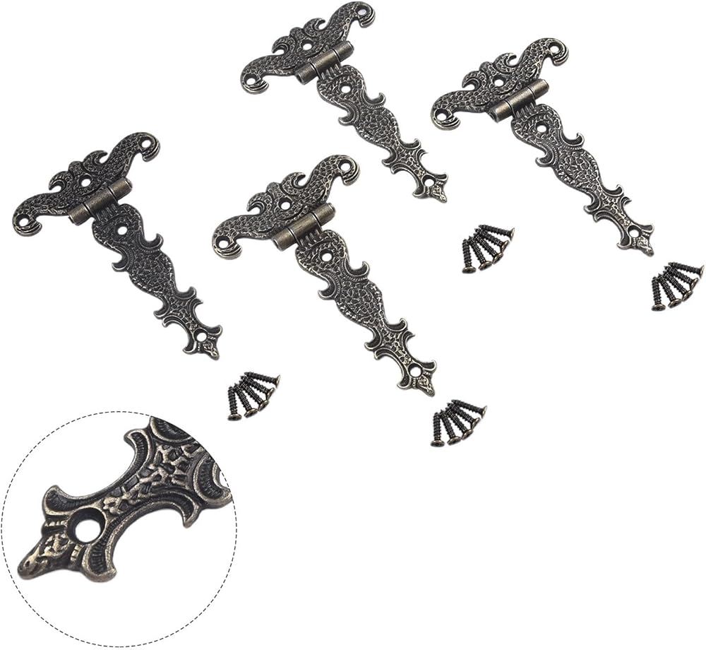 4 قطع من مفصلات الأبواب العتيقة لخزانة الملابس ومفصلات المؤخرة وحافظة المجوهرات وأجهزة الأثاث العتيقة المزخرفة مع برغي (S برونزي)
