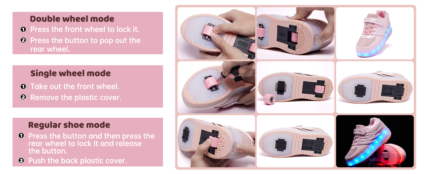 إضاءة LED ساطعة: تتميز أحذيتنا الدوارة بقبعة LED نابضة بالحياة تدوم طويلاً تجعل كل خطوة عرضًا مبهرًا، مثالية للمغامرات الليلية.