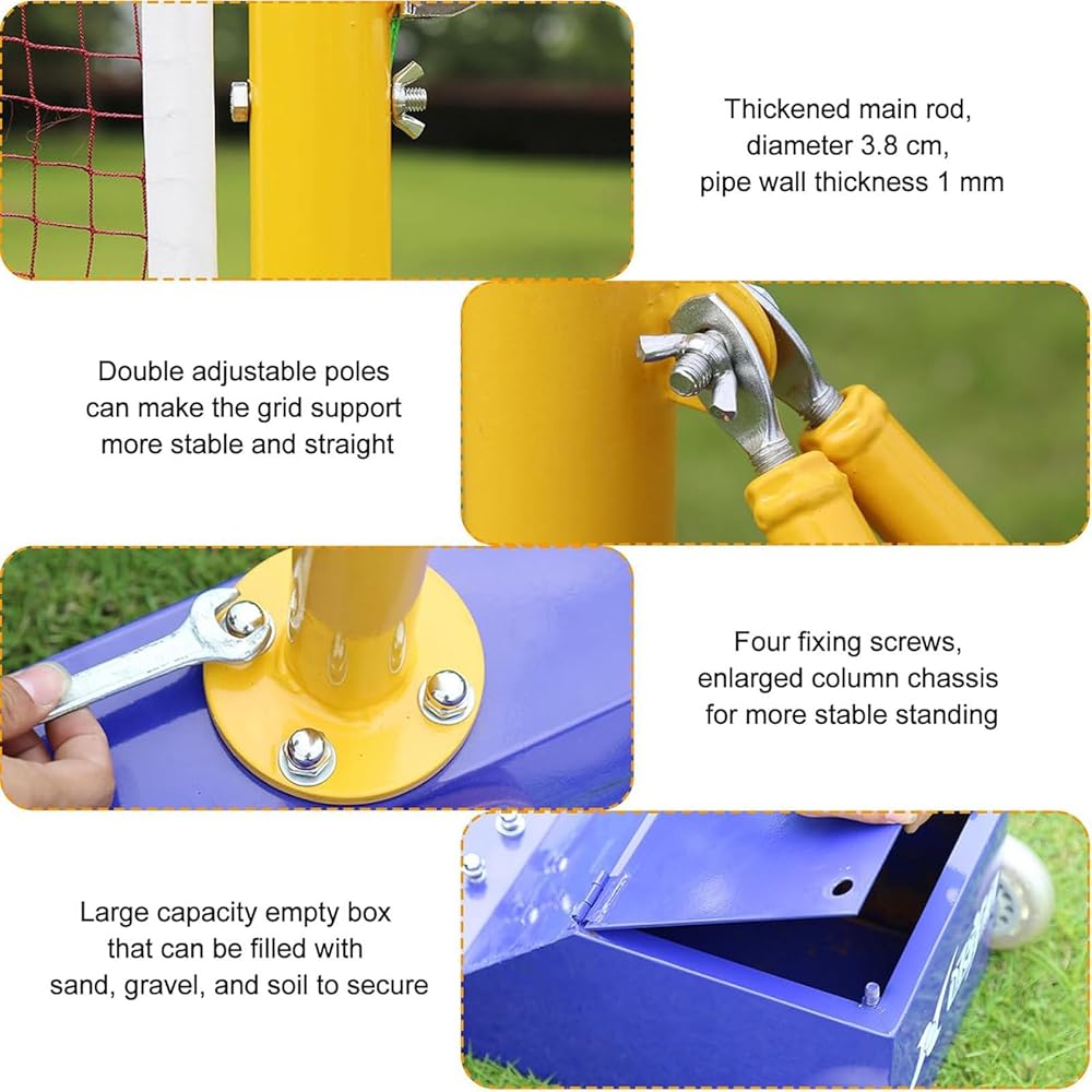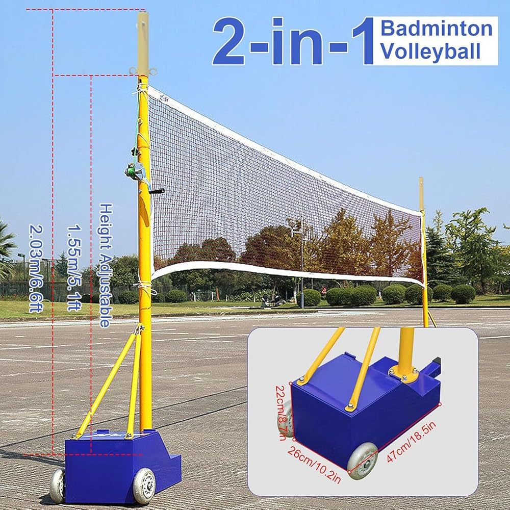 ميزة الارتفاع القابلة للتعديل: يمكن تعديل العمود بسهولة من 5.03 قدم إلى 6.88 قدم، مما يجعله مناسبًا للاعبين من جميع الأعمار ومستويات المهارة، سواء لتنس الريشة أو الكرة الطائرة.