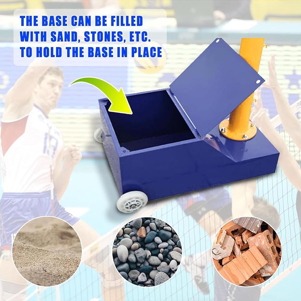 هيكل متين: يتميز عمود الكرة الطائرة بقاعدة تحمل شديدة التحمل تستقر عند ملئها بالرمل أو الحجارة، بينما تتحمل المادة المعدنية عالية الجودة العناصر لمتانة طويلة الأمد.