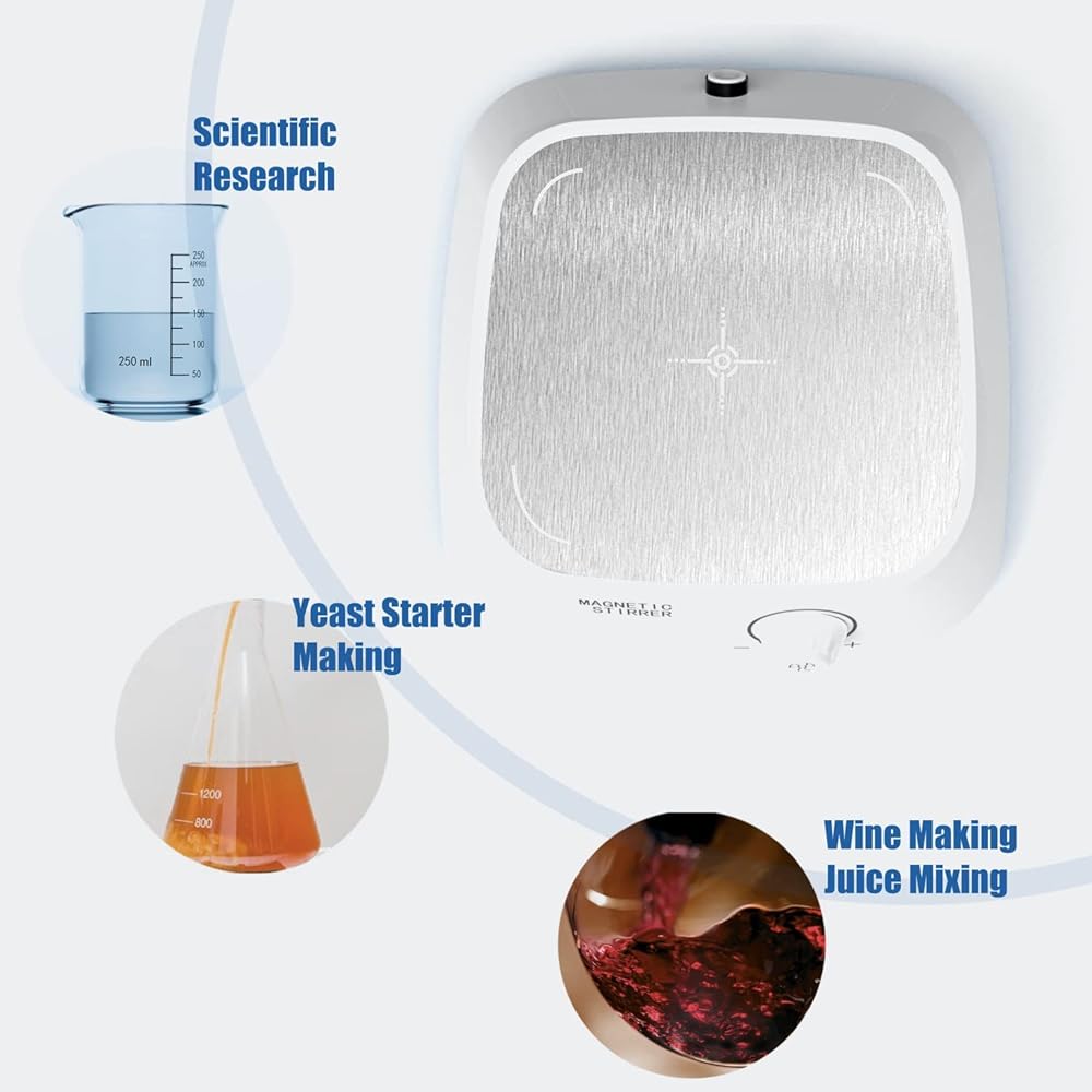 【الاستخدام على نطاق واسع】تم تصميم الخلاط المغناطيسي للتحريك في الأبحاث العلمية والصحة والأدوية والبيرة المنزلية، مثل خميرة المشروب، وصناعة النبيذ، وخلط العصير، وصب النبيذ وما إلى ذلك.
