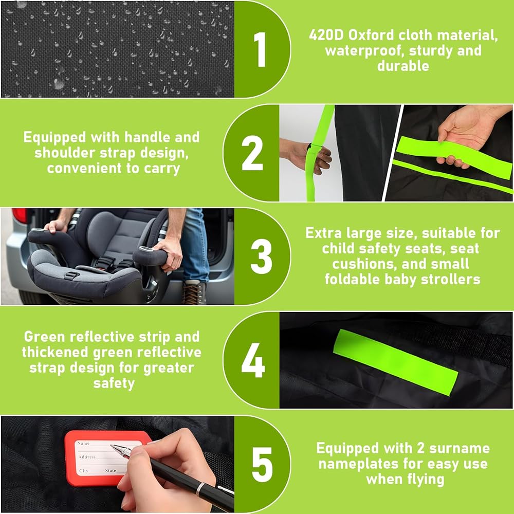 تصميم مريح ومتين: تتميز حقيبة مقعد السيارة للسفر لدينا بأشرطة كتف قابلة للتعديل لتخفيف الضغط على كتفيك، مما يضمن ارتداءً مريحًا أثناء تسجيل الوصول إلى بوابة الطائرة. إنها مصممة لتحمل وزن الأمتعة الذي يصل إلى 45 رطلاً، مما يجعلها حقيبة السفر المثالية لمقعد السيارة. مقاس كبير جدًا 86.36 سم × 43.18 سم، مناسب لمعظم مقاعد سلامة الأطفال، ووسائد المقاعد، وعربات الأطفال الصغيرة القابلة للطي.