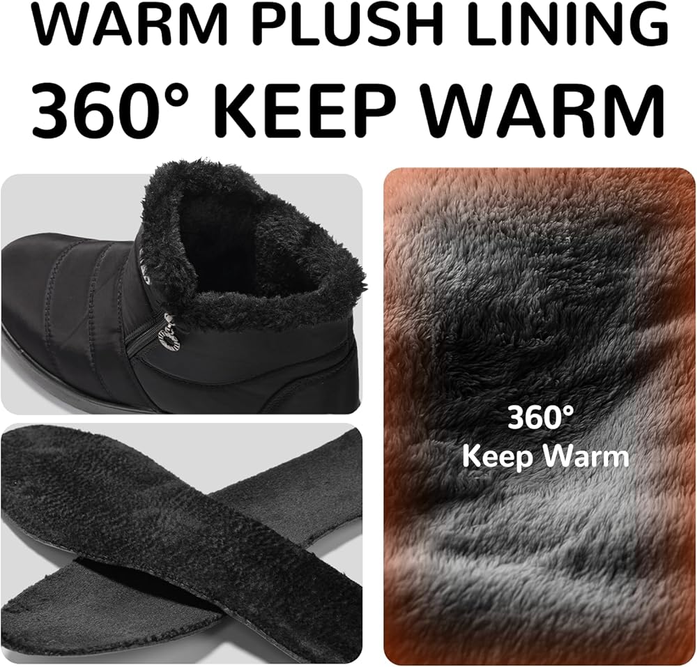• 【جزء علوي مقاوم للماء】حذاء الثلج النسائي هذا مصنوع من نسيج مقاوم للماء عالي الجودة. الجزء العلوي سهل التنظيف ويضمن بقاء القدم جافة ومرتاحة طوال اليوم
