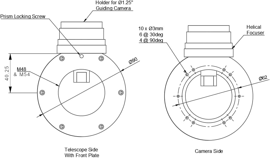 This OAG is a professional-grade off-axis guider designed for astrophotographers seeking zero flexure, lightweight guiding, and ultra-low profile integration with your telescope and camera setup. Unlike bulky guide scopes, this OAG uses a precision-engineered prism to divert starlight to your guide camera, eliminating differential flexure errors during long-exposure astrophotography.