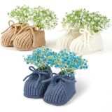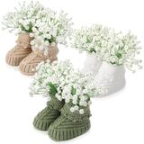 3 مجموعات من زينة طاولة استحمام الطفل، أحذية محبوكة لحديثي الولادة مع باقة عشب بامباس المجففة، قطع مركزية لطاولة إعلان الطفل، ريفي يكشف عن الجنس