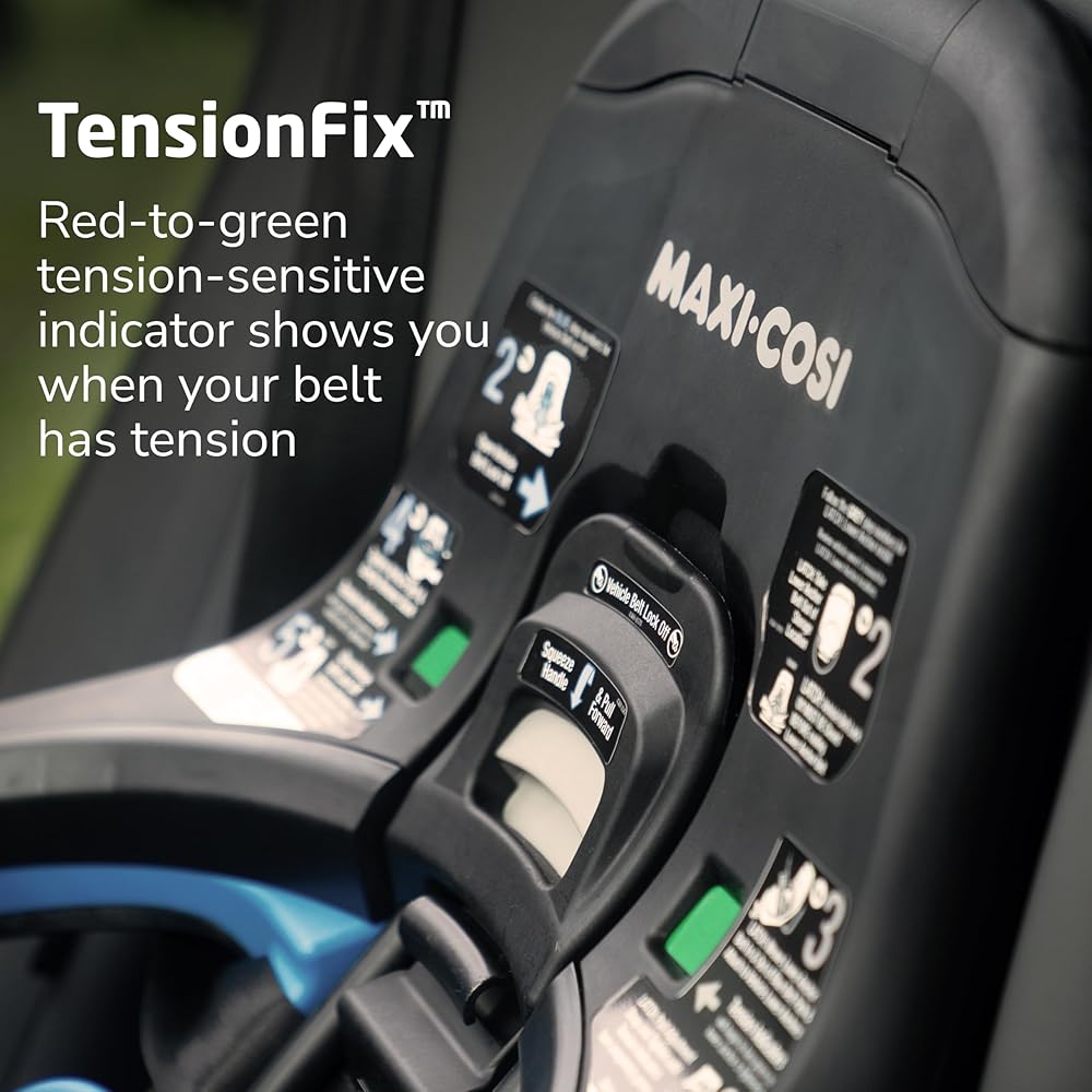 TENSIONFIX SOLVES THE MOST COMMON INSTALLATION PROBLEM 7 out of 10 parents unknowingly have––loose vehicle belt tension. Maxi-Cosi's TensionFix is our patent-pending red-to-green tension-sensitive indicator that shows you when your belt has tension.
