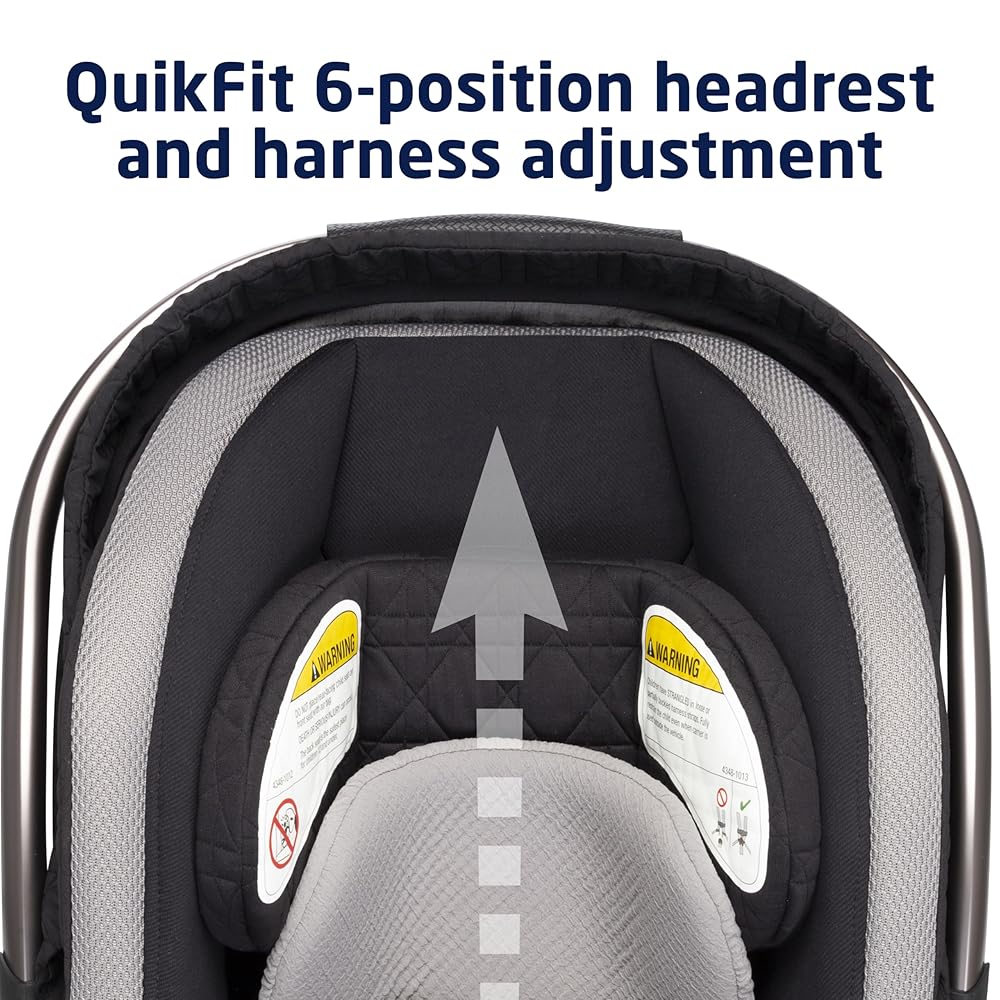 CUSTOM COMFORT You'll love not having to rethread the QuikFit harness as baby grows. The 6-position headrest and harness adjust easily with one hand. 5 recline positions for a better fit during install.