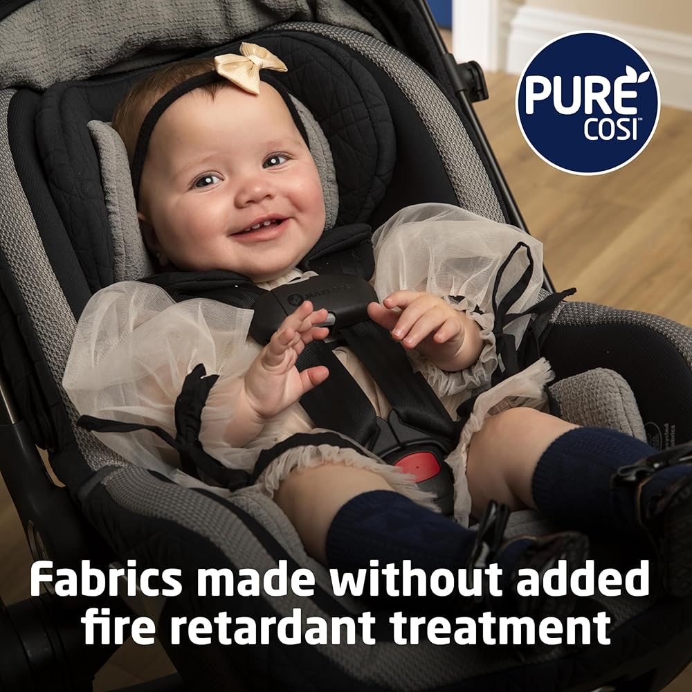 COZY SUPPORT FROM DAY 1 Premium PureCosi fabrics, made without wool or added fire retardant treatment, are better for your child and our planet. Removable, plush infant inserts for a cozy, secure fit for little ones. All cushions are machine-washable.