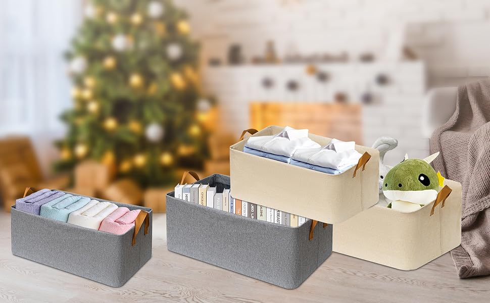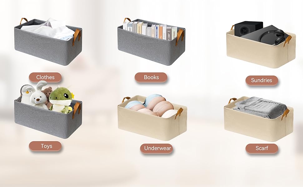متعددة الأغراض - يمكن أن تحتوي صناديق الخزانة على ملابس أطفال وحقائب ومناشف وبطانيات وما إلى ذلك. يمكن استخدامها كصناديق تنظيم الخزانة، وصندوق تخزين المحفظة، وسلال الملابس، وصندوق زينة العطلات، والعديد من الاستخدامات الأخرى.