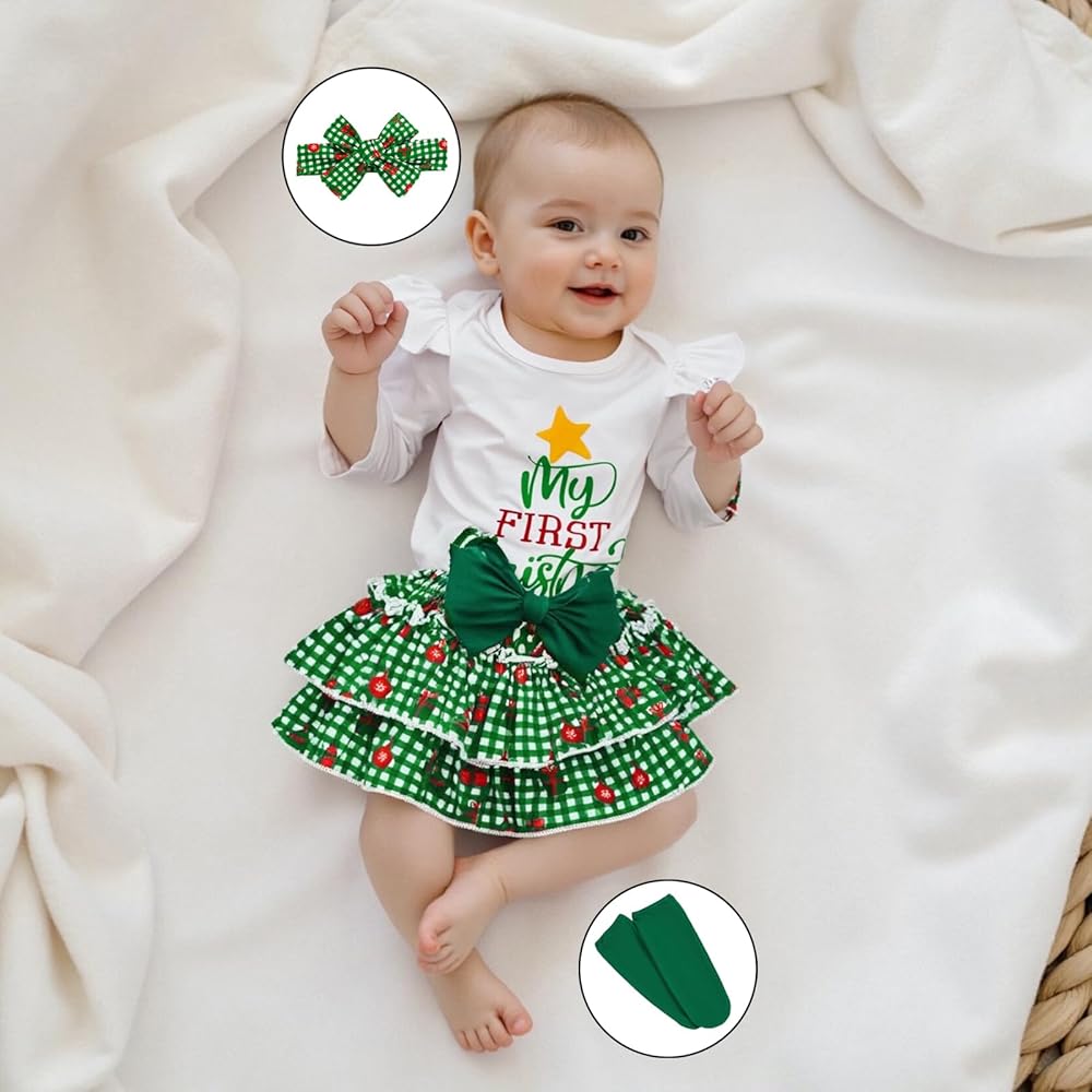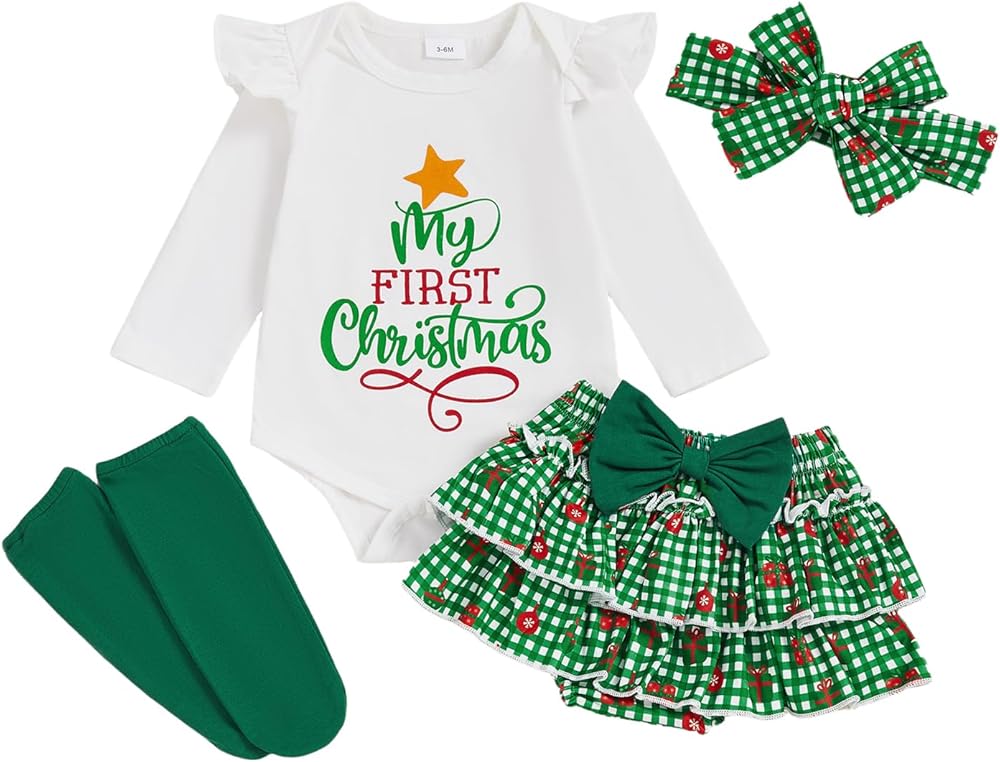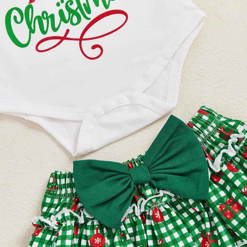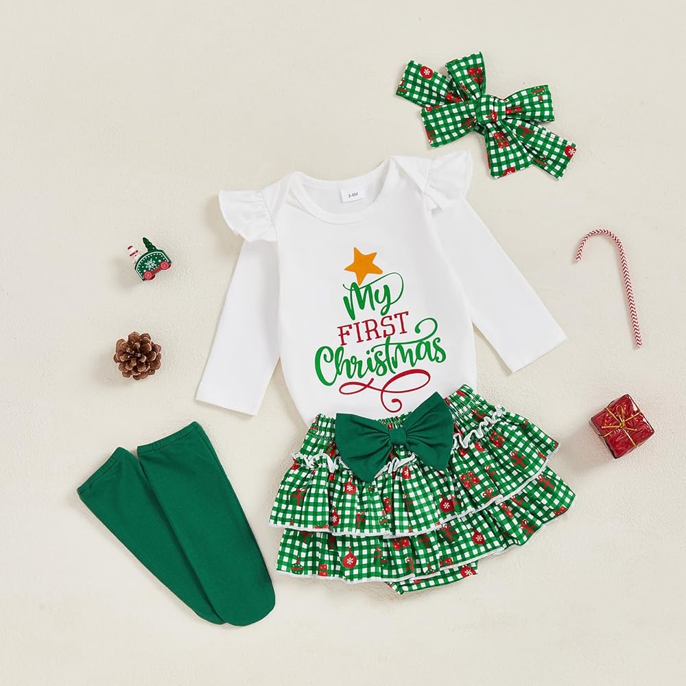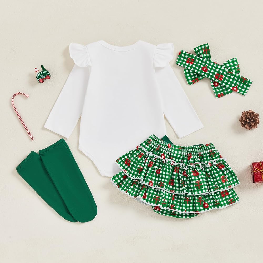 4Pcs Infant Girl Mardi Gras Outfits Long Sleeve Crew Neck Letters Print Romper Tops Layered Shorts Headband Socks Set