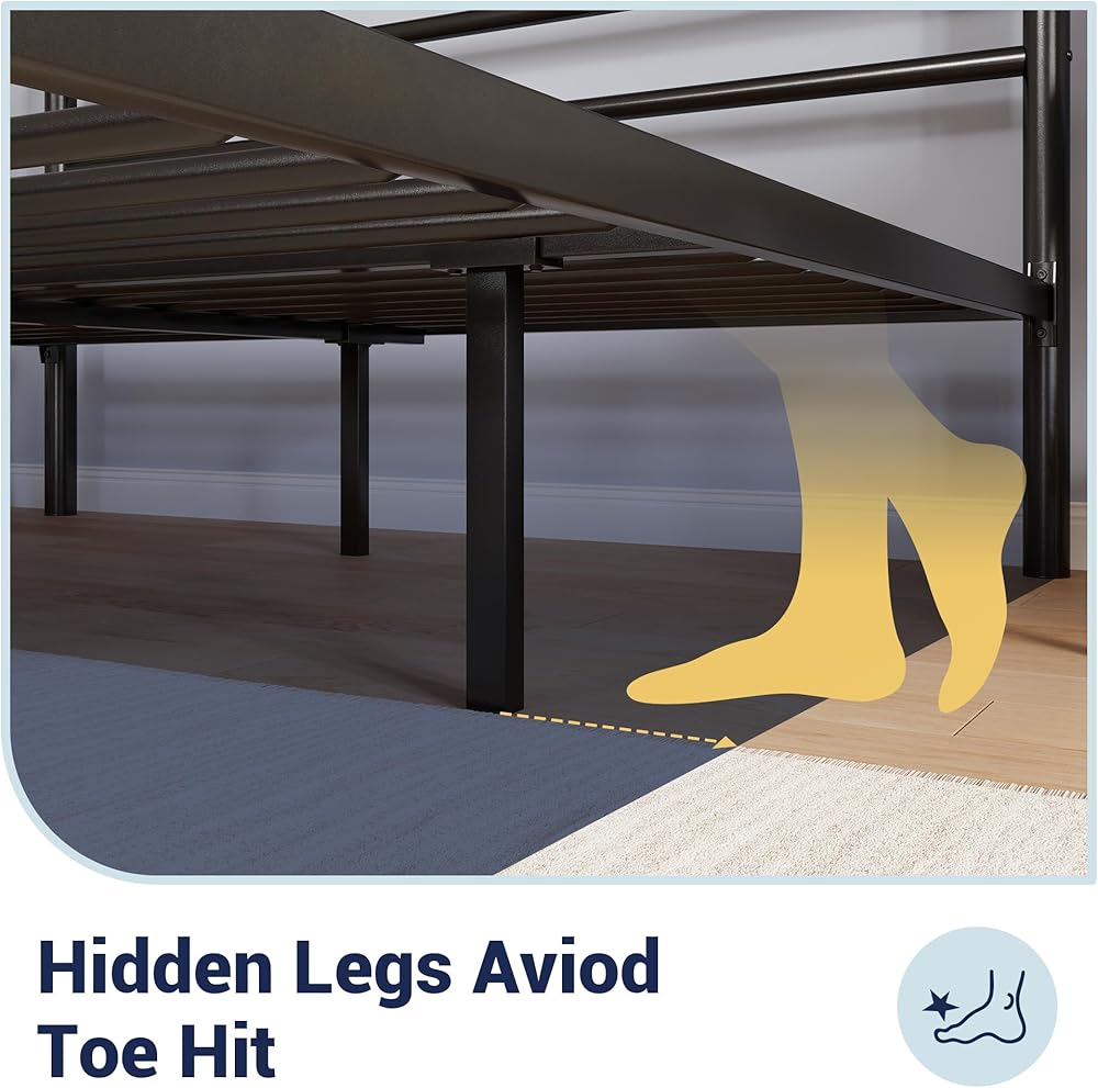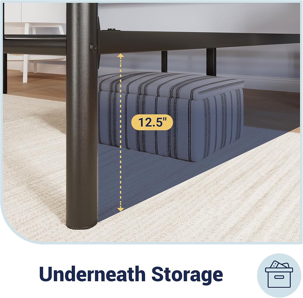 التخزين تحت السرير: استفد من مساحة 12.5 بوصة أسفل المساحة، يوفر إطار السرير المعدني الحديث هذا مساحة تخزين واسعة للصناديق أو الأحذية أو العناصر الموسمية - مثالي للحفاظ على المساحة الخاصة بك منظمة وخالية من الفوضى