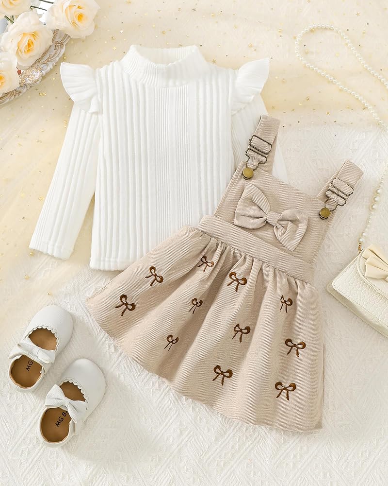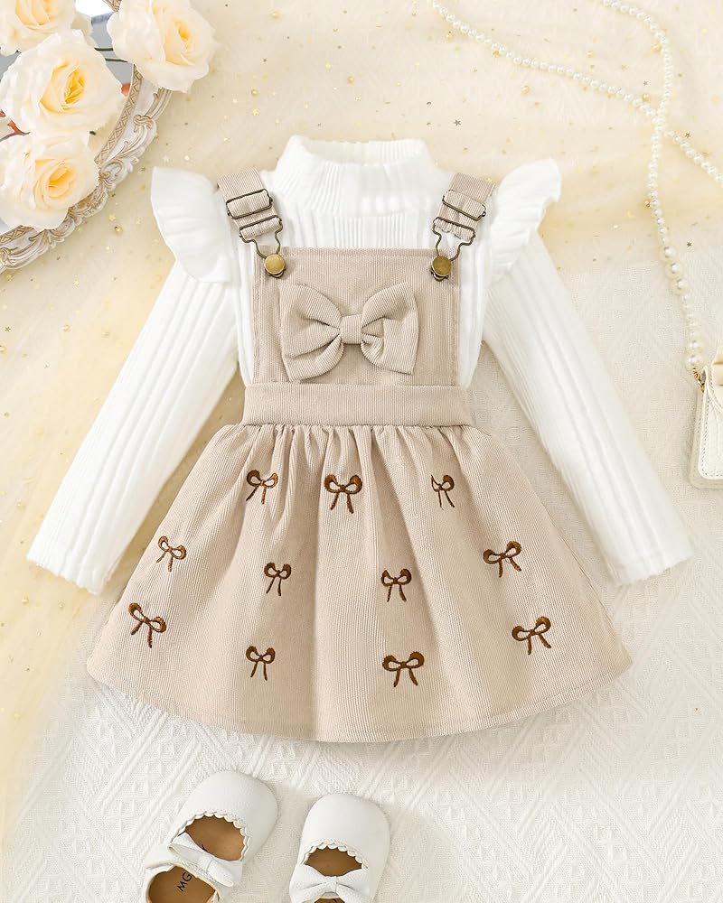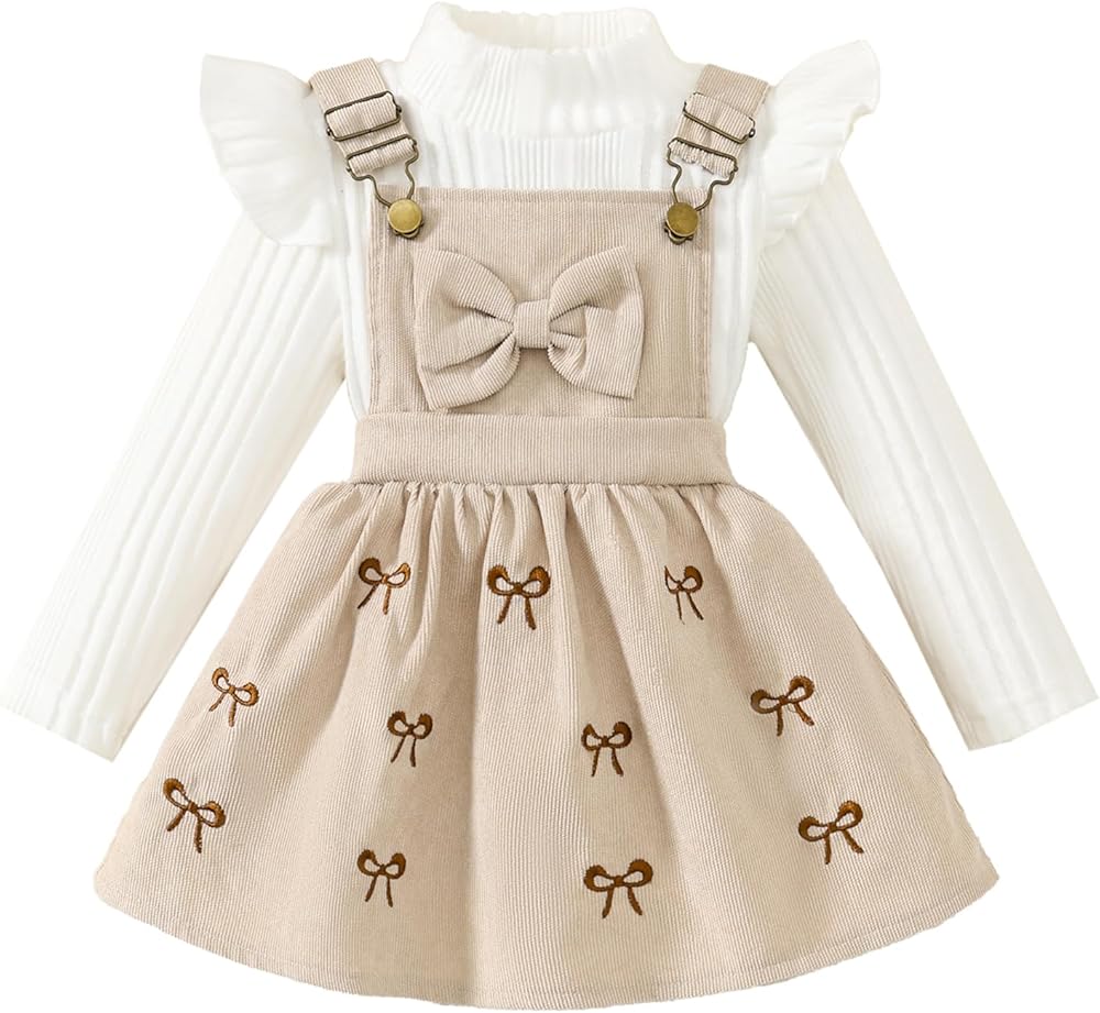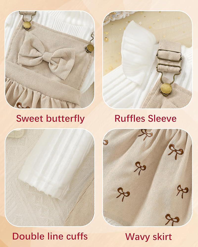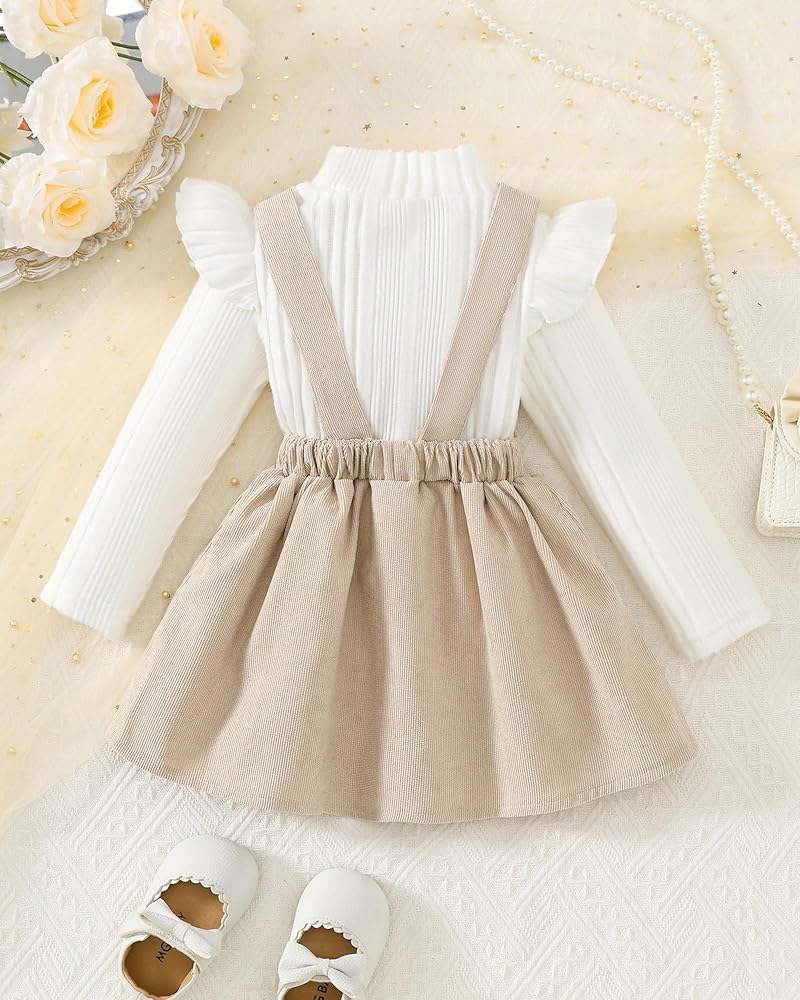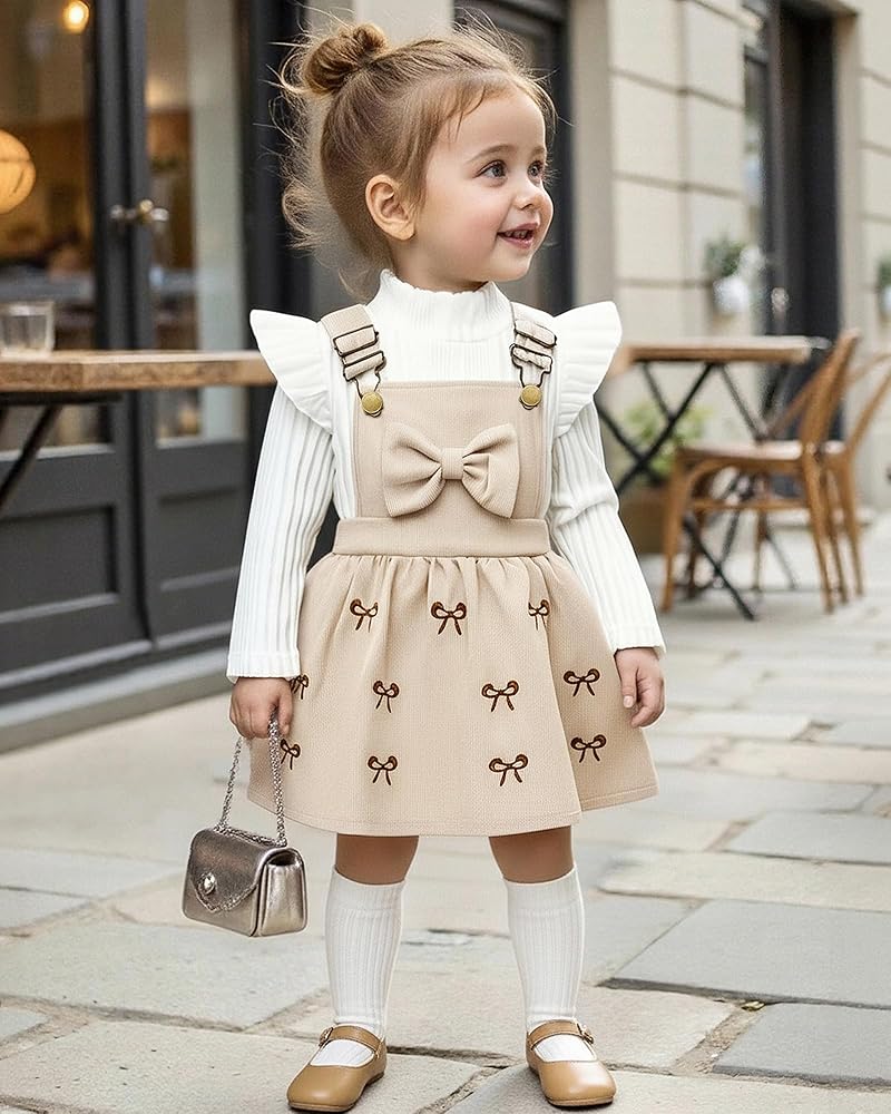 - السمات: ملابس خريفية للفتيات الصغيرات، زي تنورة بحمالات للفتيات الصغيرات، فستان سروال قصير للفتيات الصغيرات، مجموعة ملابس من قطعتين تتميز برفرفة، أكمام طويلة، رقبة مستديرة، تي شيرت سادة مضلع وفستان سروال قصير على شكل حرف A، رائع وجميل