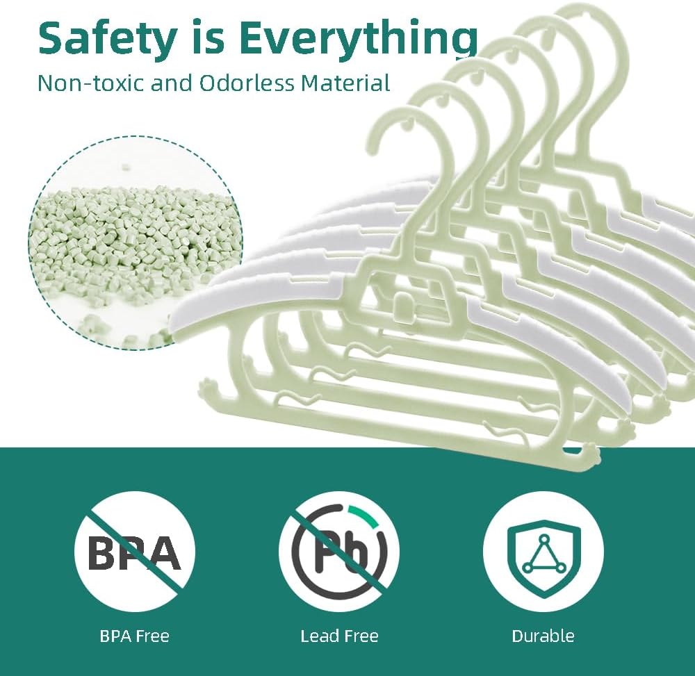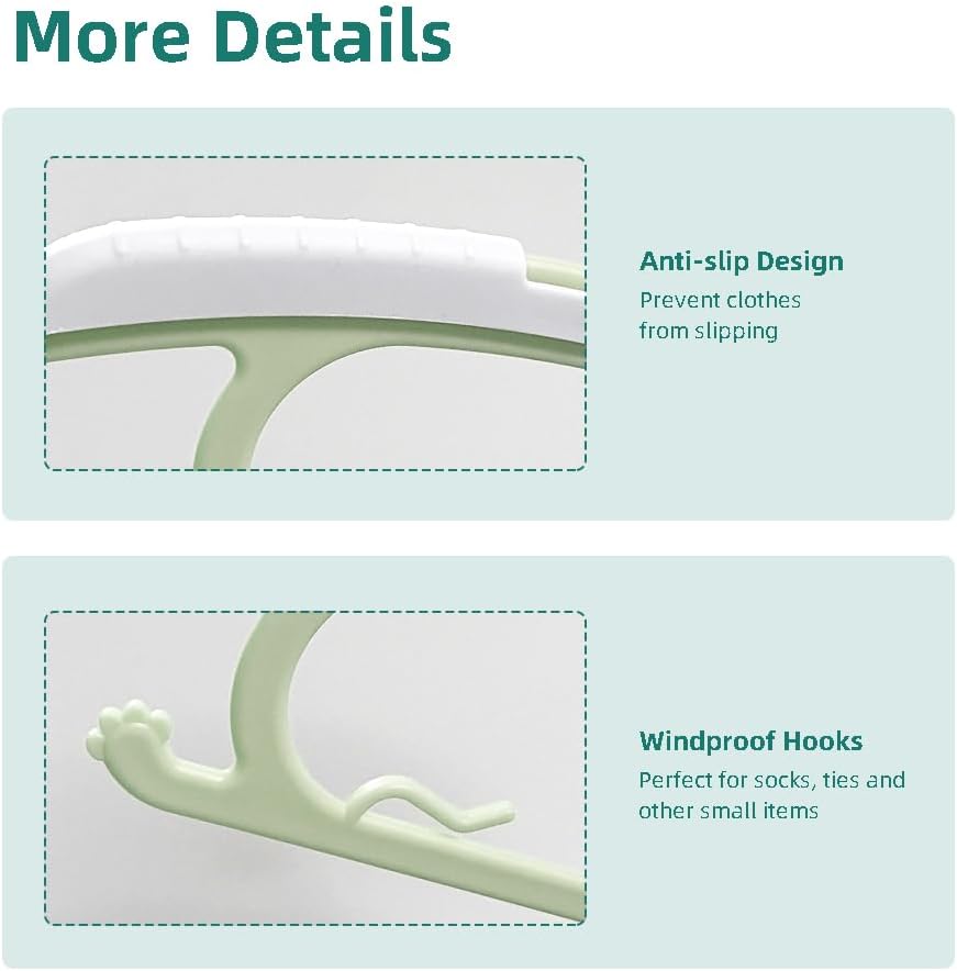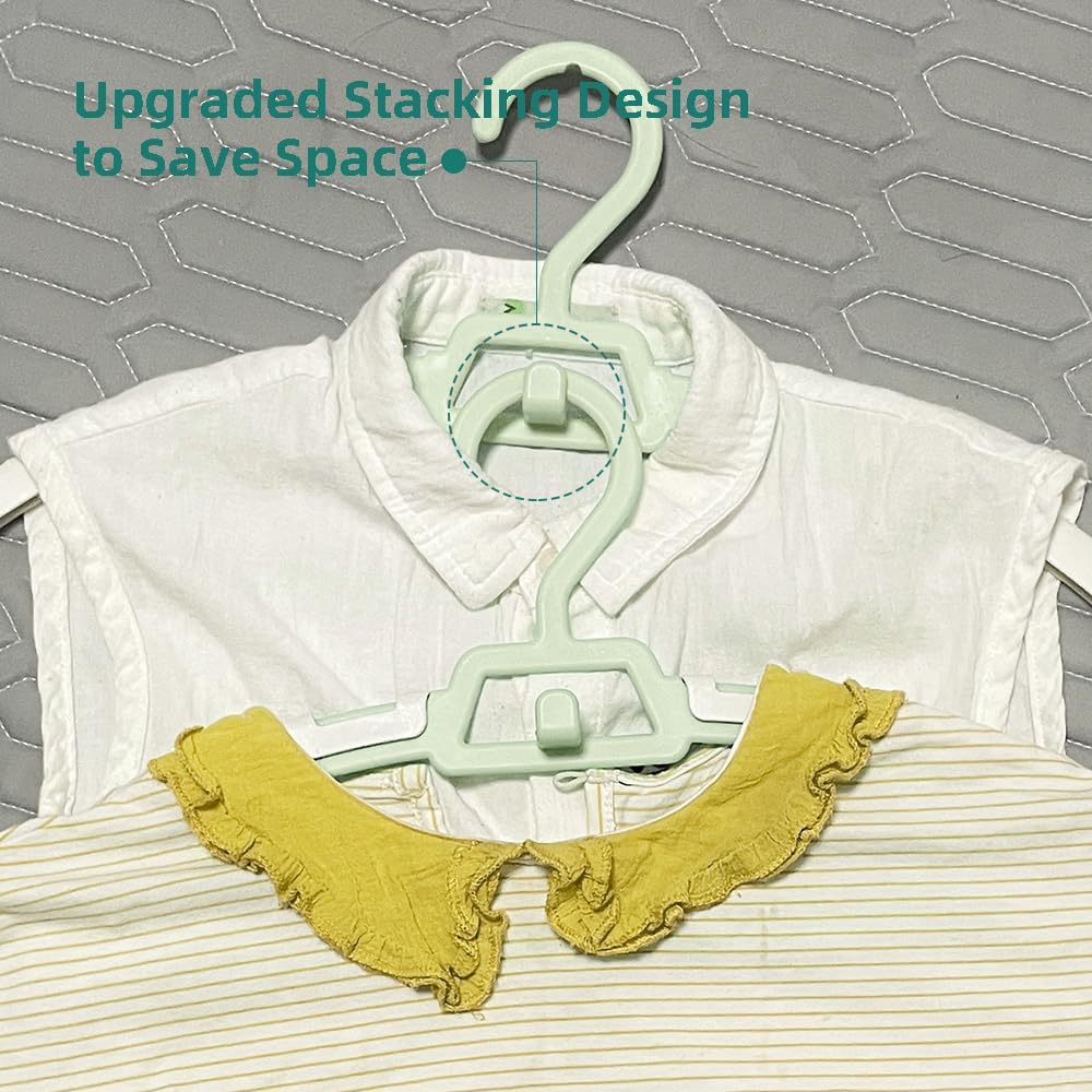 توفير مساحة الخزانة (50% أكثر): إذا كنت تعاني من مساحة محدودة في غرفة الحضانة، فلا تبحث أكثر. ستجعل الشماعات القابلة للتكديس الغرفة تبدو منتعشة ومنظمة. قم بتعليق الزي مع السراويل أو العلاقات أو القبعات المطابقة