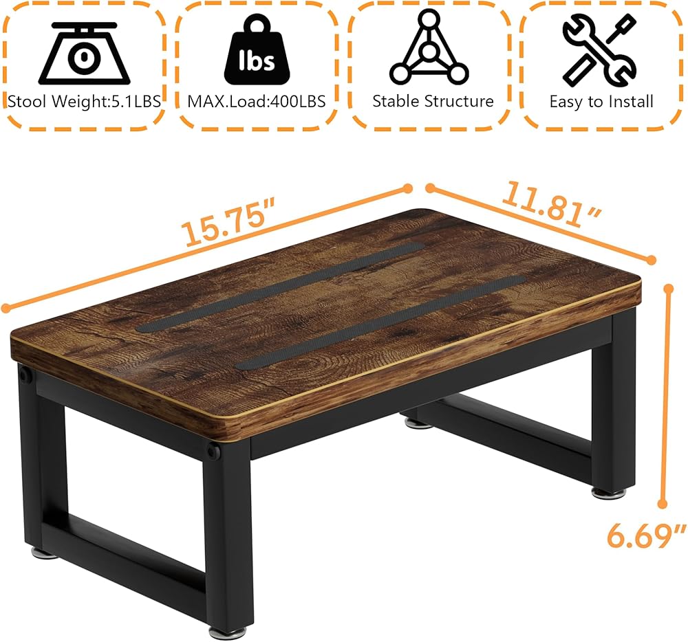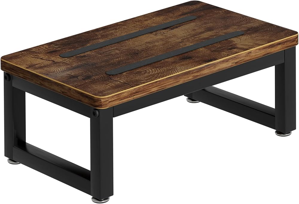 مقاعد خشبية ذات خطوات مضادة للانزلاق للبالغين، مقاعد قدم بجانب السرير شديدة التحمل بسعة 400 رطل للأسرة العالية، خطوات سرير طويلة 7 بوصات لغرفة النوم والحمام والمطبخ، بني ريفي