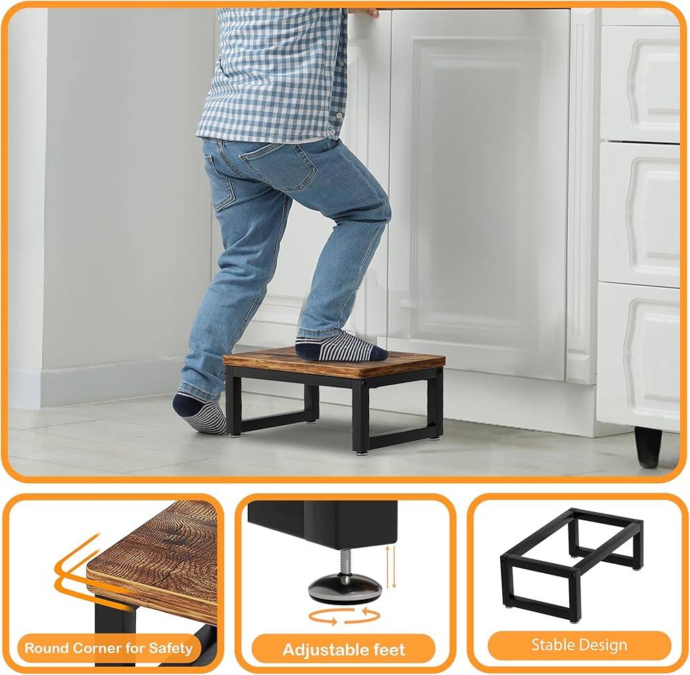 [صغير الحجم وموفر للمساحة] تصميم نحيف يمكن وضعه بسهولة بجانب العدادات أو الأرفف أو في الخزانات - بدون فوضى! يتيح لك مقعد الخطوات بطول 17.78 سم الوصول إلى الخزانات العالية أو الاعتناء بالنباتات أو إضافة مقاعد سريعة. سحر على طراز المزرعة يناسب الأرفف العالية أو ورش العمل أو المداخل، وهو عملي وأنيق تمامًا