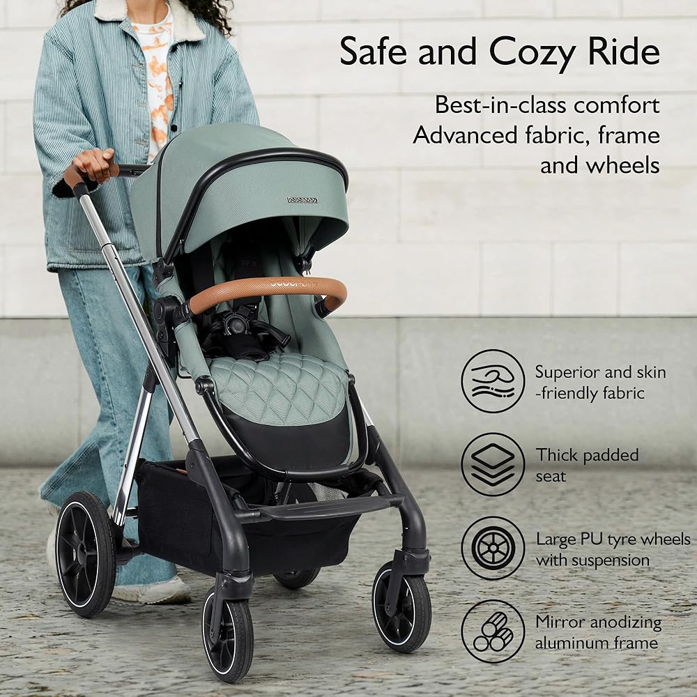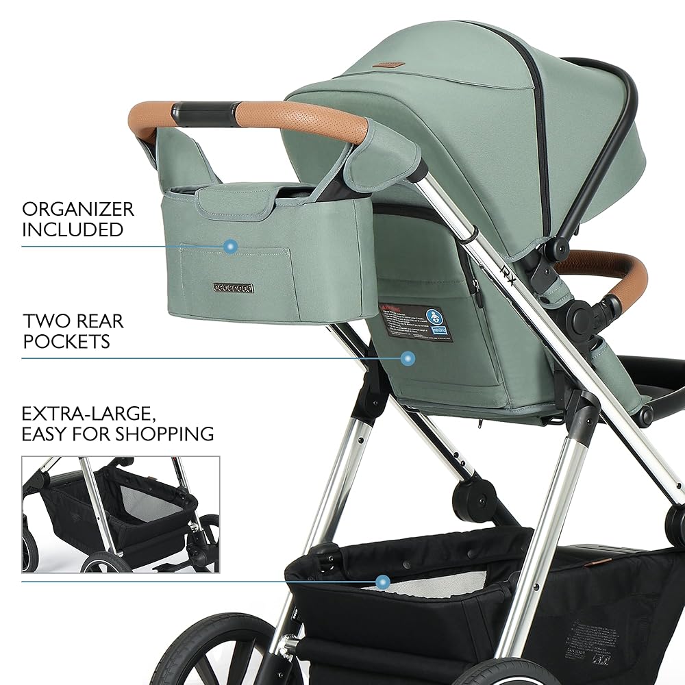 ملحقات إضافية متضمنة: منظم عربة الأطفال عالي الجودة، مظلة الشمس وغطاء البعوض 2 في 1، غطاء المطر، قناع قابل للإزالة.