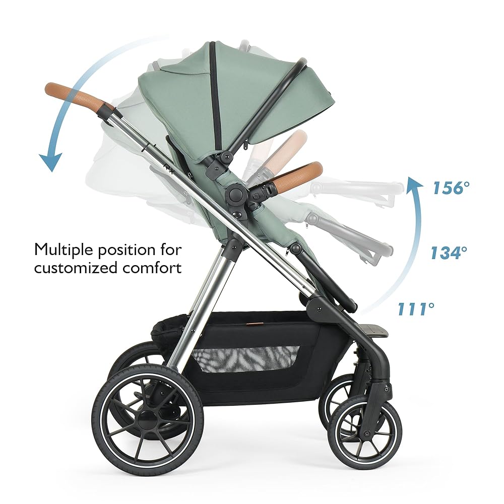 مقعد الأطفال المتضمن: يسمح مقعد الأطفال الصغار ذو الحجم الكامل والقابل للعكس لطفلك الذي ينمو بالركوب للأمام والخلف والاستقامة الكاملة والاستلقاء وفي أي مكان بينهما.