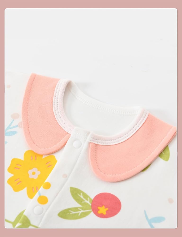 VERSATILE CLOTHING: Five different outfit styles featuring onesies and two-piece sets in floral patterns with pink and white color combinations