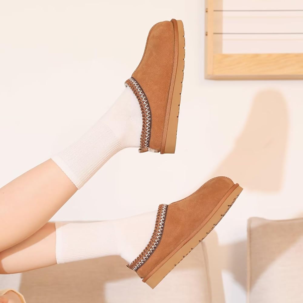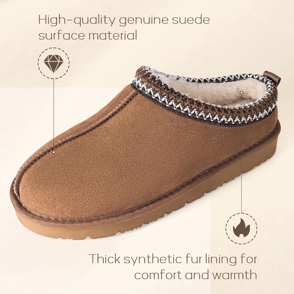 • مواد عالية الجودة: هذه الشباشب النسائية مصنوعة من جلد سويدي أصلي وصوف صناعي عالي الجودة لتوفير الدفء الشامل لقدميك. غالبًا ما يلزم ارتداء هذه المواد عالية الجودة لمدة يوم أو يومين للحصول على الراحة المثالية.
