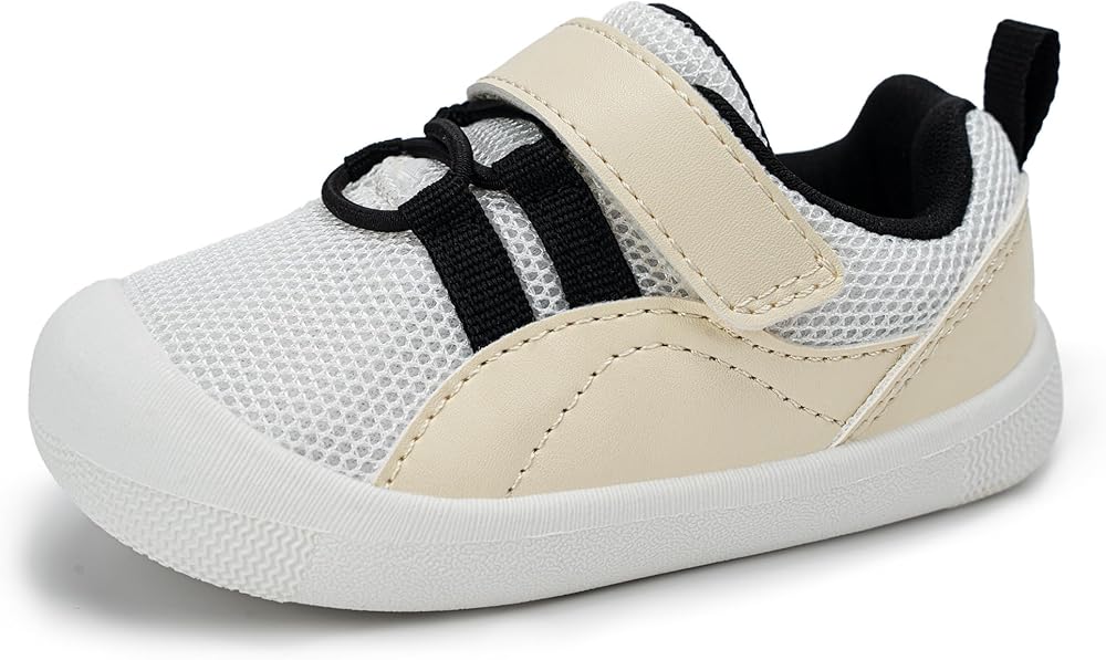 【تصميم واقٍ وجيد التهوية】يحمي غطاء أصابع القدم المطاطي بالكامل من الصدمات أثناء المشي والجري والقفز والزحف. كوب الكعب المقوى يحمل كاحلي الطفل الناعم بلطف لمنع الالتواءات. شبكة علوية تحافظ على برودة القدمين وراحتهما أثناء اللعب النشط.