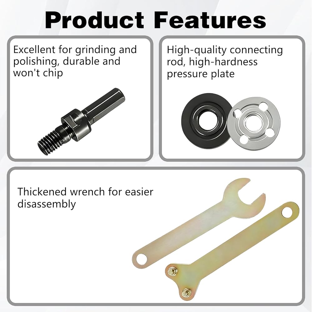 [Compact and Portable Design] Contains all the materials needed for a renovation in one set, making it a great choice for portable use or stowing in your toolbox. Angle grinder connector set's perfect for DIY enthusiasts and professionals, offering both flexibility and performance.