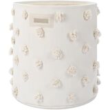 Crafted from cotton, the laundry hamper combines stylish design with durability. Its cylindrical shape and spacious interior make it ideal as a storage basket for clothes, toys, or nursery room decor essentials.