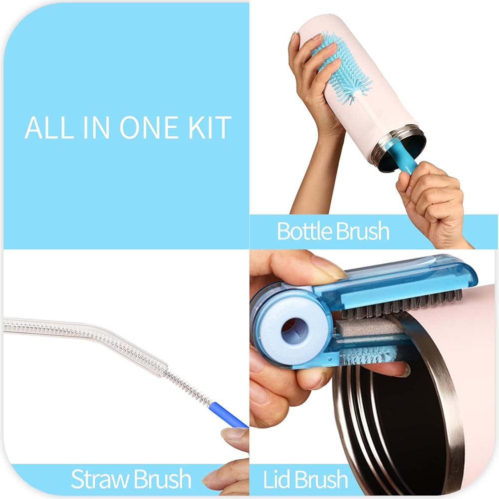 4-Piece Bottle Cleaning Kit - Includes an 11.8" Water Bottle Cleaner, two 12.6" Nylon flexible straw brushes, and a 4-in-1 cup brush - Delivering full-coverage cleaning for your go-to hydration gear. Fit for water bottle , tumblers, baby bottles, mason jars, and insulated canisters.