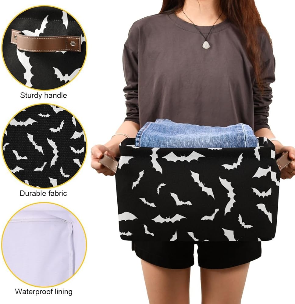 سلة تخزين الخفافيش السوداء للهالوين، سلال المطبخ المصنوعة من القماش، صناديق تخزين منزلية مفتوحة، صناديق تخزين قابلة للطي لقماش الأطفال والحيوانات الأليفة، سلال خزانة الكتب، 16 × 12 × 8 بوصة
