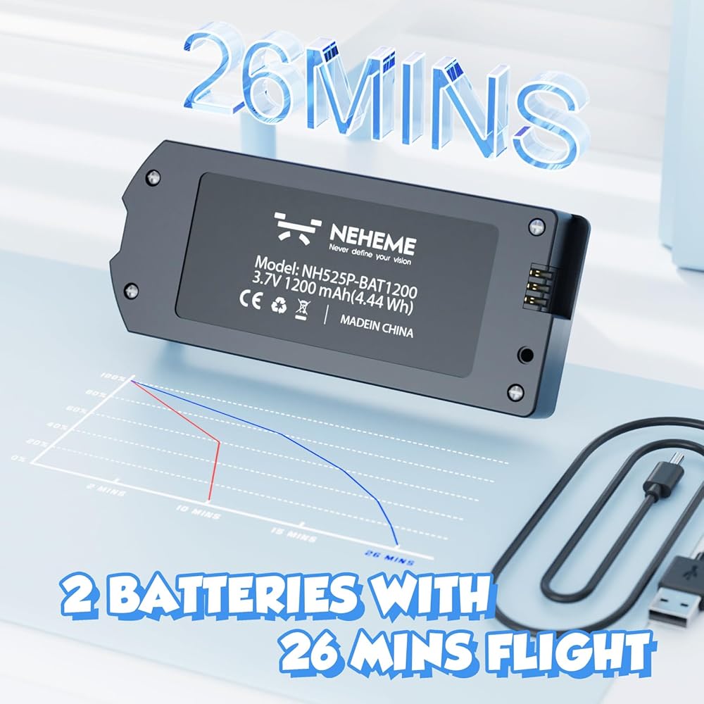 تصميم آمن ووقت طيران طويل: مع إعطاء الأولوية للسلامة، تتميز الطائرة بدون طيار بالكاميرا بتنبيهات منخفضة الطاقة مع وميض LED، وإيقاف الطوارئ، و4 واقيات للمروحة لحماية الطيران. مزودة ببطاريتين ذكيتين، وتوفر ما يصل إلى 26 دقيقة من وقت الطيران، مما يتيح شحنًا أكثر أمانًا وجلسات طيران ممتدة.